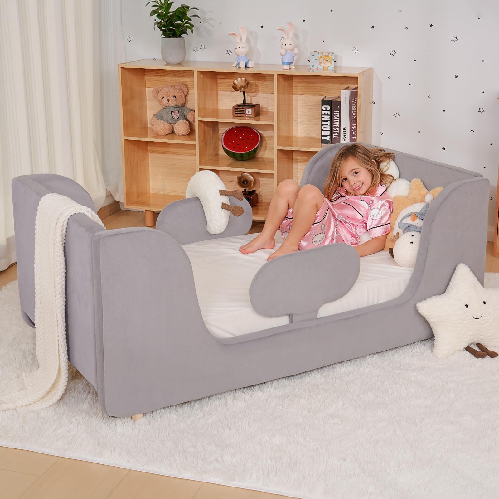 • ZIKEBTUY Kinderbett 70x140cm - Gepolstertes Bodenbett Mit Schutzgitter