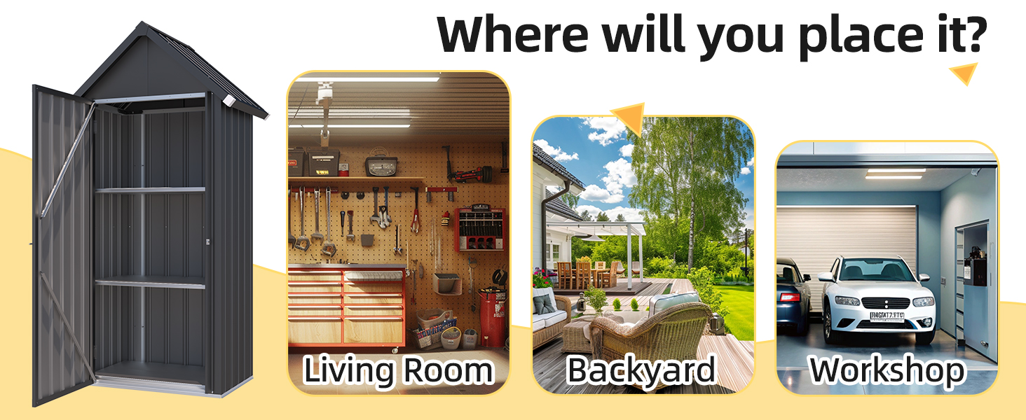YODOLLA Gartenschrank 53x96x178cm - Geräteschuppen Aus Verzinktem Stahl Mit Schloss