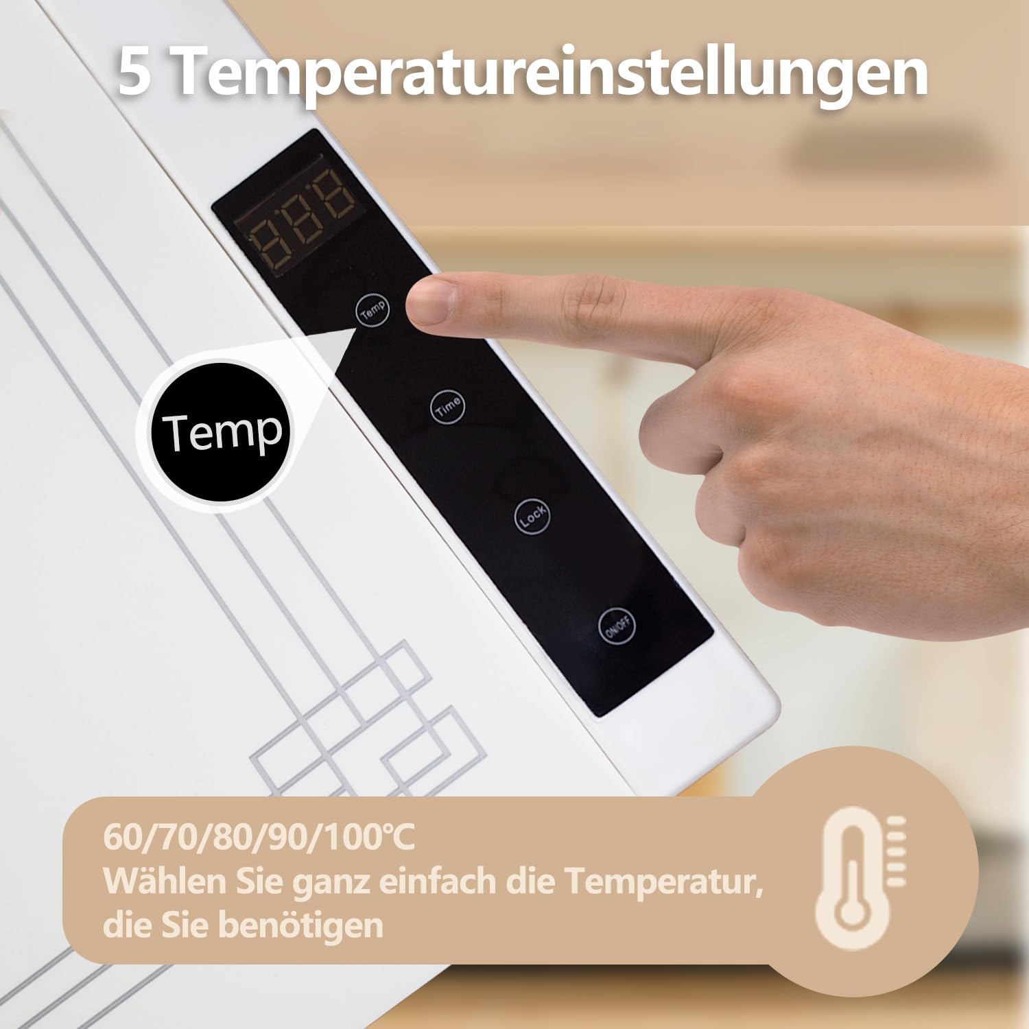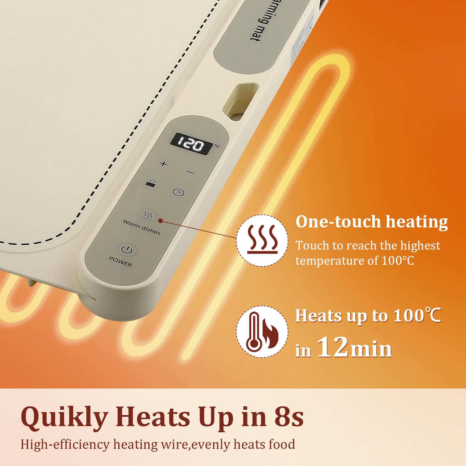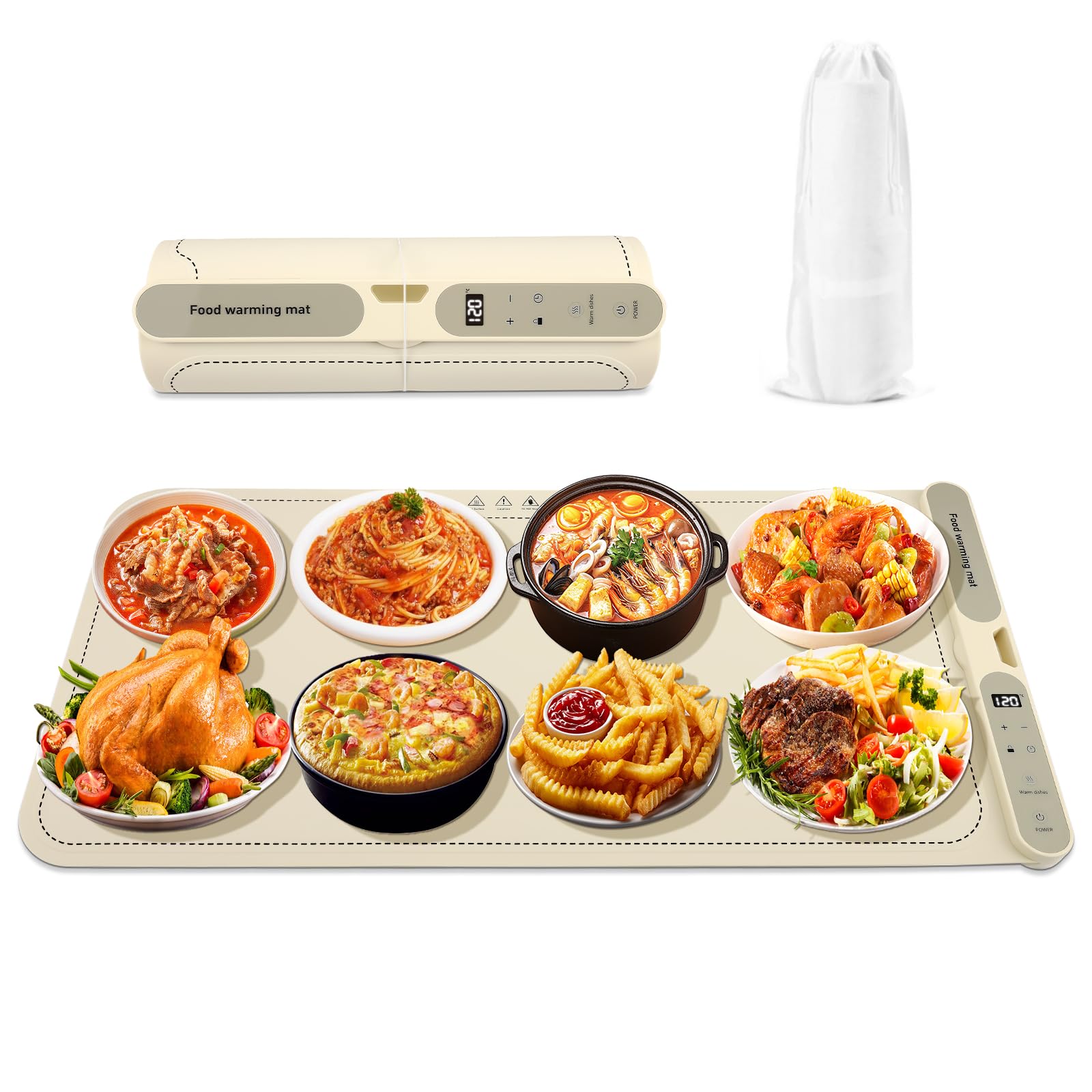 Koch-Enthusiasten und Gastgeber, diese Warmhalteplatte revolutioniert eure Dinner-Partys! 🍽️ Hält bis zu 8 Gerichte gleichzeitig auf perfekter Temperatur - ob Familienfeier, Festtagsessen oder gemütlicher Abend mit Freunden!\n\nDie großzügige Heizfläche von 80x38cm bietet Platz für Töpfe, Schüsseln, Platten und mehr! Gleichmäßige Wärmeverteilung ohne kalte Stellen - alles bleibt durchgängig warm und lecker.\n\n7 präzise einstellbare Temperaturstufen von 40°C bis 100°C - perfekt für Suppen, Saucen, Fleischgerichte, Beilagen und Desserts! Intuitive Bedienung für optimale Ergebnisse.\n\nHergestellt aus flexiblem Nano-Silikon mit spezieller Beschichtung - extrem pflegeleicht! Einfach abwischen und trocknen, keine mühsame Reinigung nötig.\n\nPraktischer Timer von 1-8 Stunden - schaltet sich automatisch ab und vermeidet Überhitzung oder Energieverschwendung. Besonders sicher im Betrieb!\n\nPlatzsparend zusammenrollbar - leicht zu verstauen in jeder Küche. Perfekt für Ramadan, Sabbat, Feiertage oder einfach den alltäglichen Gebrauch.\n\nOb für festliche Anlässe oder den täglichen Familientisch - mit dieser Platte ist jedes Gericht immer perfekt temperiert servierfertig! Kein kaltes Essen mehr!\n\nVerwandle deine Küche in eine Profi-Gastronomie - deine Gäste werden begeistert sein! Genieße warme Mahlzeiten, wann immer du willst! 🔥