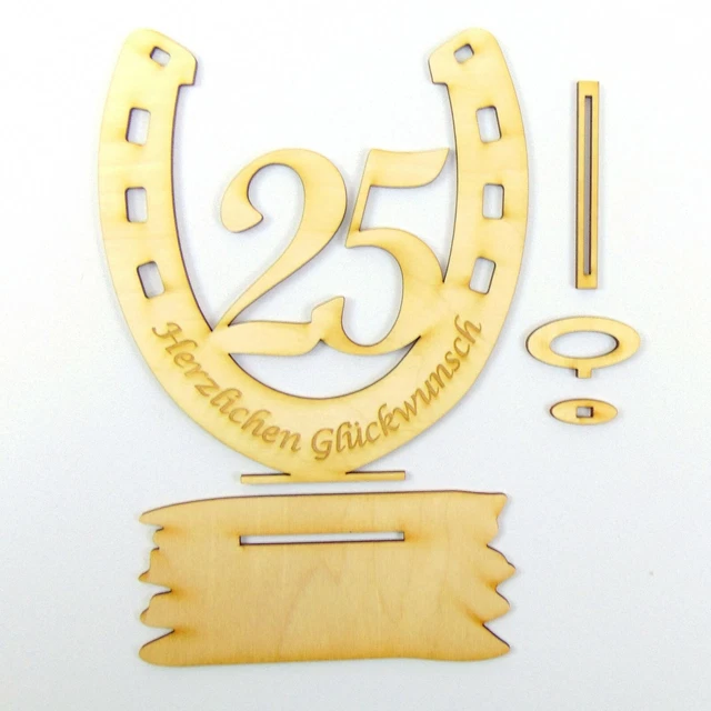 Hey, sucht ihr noch ein besonderes Geschenk für den 25. Geburtstag? Dieser Geldgeschenk-Aufsteller aus Holz ist eine total originelle Art, Geld zu verschenken! Mit den Maßen 32x20cm ist er ein echter Blickfang auf dem Geburtstagstisch. Aus 6,5mm starkem Holz gefertigt, ist er robust und stabil. Das Design zeigt eine Torte, Luftballons, eine Geschenkbox und den Text 'Herzlichen Glückwunsch' mit der großen Zahl 25. Im Lieferumfang ist sogar eine passende A5-Karte enthalten - perfekt, um eine persönliche Nachricht an den Jubilar zu schreiben. So wird das Geldgeschenk nicht nur praktisch, sondern auch emotional! Egal ob für euer Kind, Eltern, Großeltern oder Freunde - dieser Aufsteller ist für jeden 25-jährigen Jubilar das perfekte Geschenk. Ihr könnt ihn sogar noch zusätzlich dekorieren oder das Holz beschriften. Viel besser als ein langweiliger Umschlag! Macht den besonderen Tag zu einem unvergesslichen Erlebnis mit diesem einzigartigen Geldgeschenk.