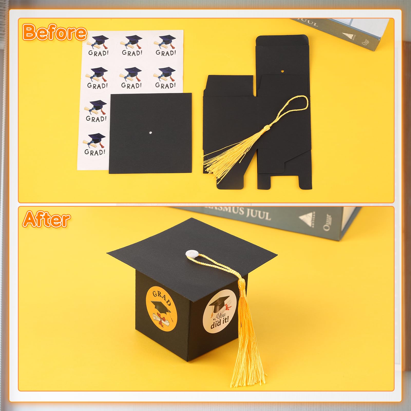 Diese niedlichen Abschluss-Geschenkboxen machen jede Feier unvergesslich! Das Set enthält 30 stilisierte Bachelor-Hüte aus stabilem Papier plus 30 goldene Quasten. Jede Box misst 6x6x6cm - perfekt für Süßigkeiten, Schokolade, kleine Kekse oder Mini-Geschenke. Die Montage ist super einfach: einfach zusammenfalten, keine Kleber oder Werkzeuge nötig! Ideal für Schulabschlüsse, Kindergarten-Events, Uni-Feiern oder Promotionen. Die schwarzen Hüte mit goldener Quaste sehen richtig edel aus und machen sich super als Tischdekoration. Deine Gäste werden begeistert sein von diesen persönlichen Aufmerksamkeiten. Ob für Grundschule, Gymnasium oder Universität - diese Boxen passen zu jeder Abschlussfeier und hinterlassen bleibenden Eindruck!