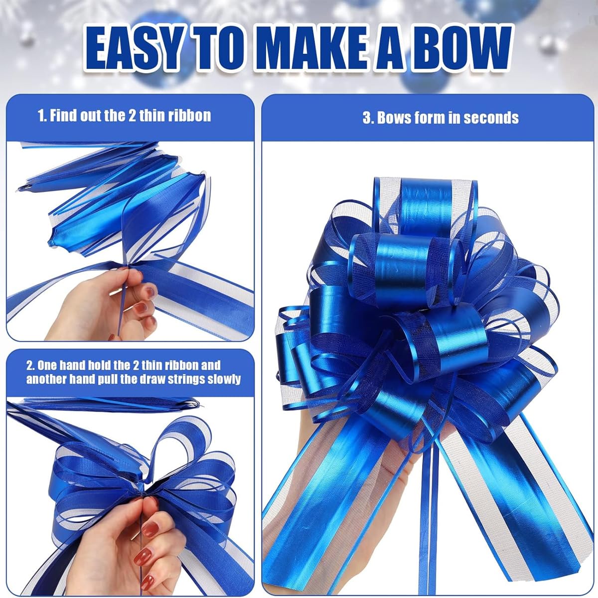 Hey, diese blauen Geschenkschleifen sind ja der absolute Hingucker für deine Geschenke! Im Set bekommst du 6 Stück in der Größe 17x22cm - perfekt für Geburtstage, Weihnachten, Valentinstag oder Hochzeiten. Aus hochwertigem Polypropylen, das antistatisch, wasserdicht und robust ist. Ungiftig und geschmacksneutral, also super sicher. Einfach die beiden Bänder an den Enden ziehen - schon ist die Schleife montiert! Und das Beste: Du kannst sie nach Gebruach wieder auseinandernehmen und wiederverwenden. Die helle blaue Farbe sieht total schön aus und macht jede Verpackung zum Eyecatcher. Weich anzufassen und mega langlebig. Egal ob für Geschenkkörbe, Tüten, Hochzeitsdeko oder Partys - damit machst du jede Verpackung perfekt. Hol dir dieses praktische Set und verpacke deine Geschenke wie ein Profi!