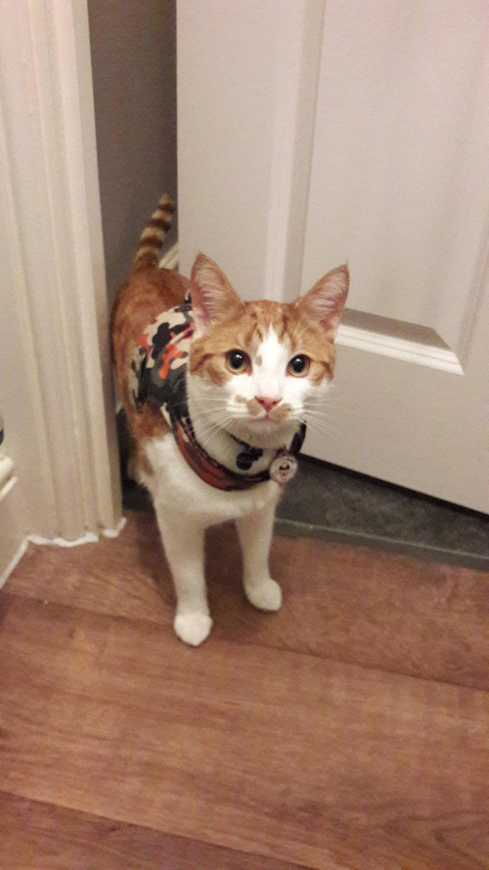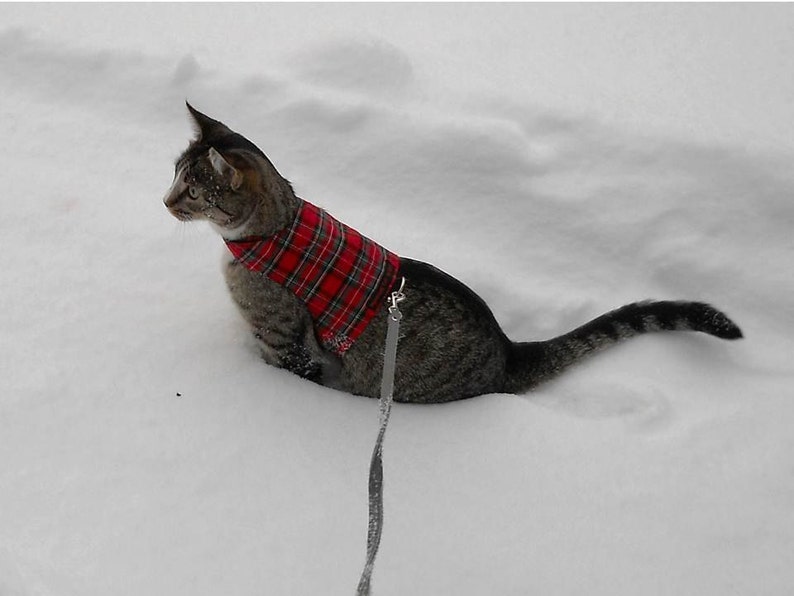 Maria aus dem schottischen Hochland hat dieses einzigartige Katzen-Geschirr speziell für anspruchsvolle Stubentiger entwickelt! Anders als viele herkömmliche Geschirre ist dieses Design absolut ausbruchssicher - deine Katze kann sich nicht einfach 'rückwärts' herauswinden. Hergestellt aus hochwertigen Materialien und dreifach vernäht, hält dieses Geschirr auch den aktivsten Katzen stand. Das coole Tarnmuster mit Sergeant-Abzeichen sieht nicht nur stylisch aus, sondern ist auch praktisch. Für ausgewachsene Katzen mit einem Brustumfang zwischen 30,5 und 50,8cm geeignet. Der geschweißte Stahl-D-Ring ist extra verstärkt, damit die Leiste sicher hält. Einfach an- und ausziehen dank der langen Klettverschlüsse. Und das Beste: Jedes Geschirr ist handgefertigt und mit schwarzer Baumwolle reversibel - doppeltes Tragevergnügen! Maschinenwaschbar für einfache Reinigung. Wichtig: Lasse deine Katze niemals unbeaufsichtigt draußen, auch nicht mit diesem sicheren Geschirr. Für mehr Freiheit und Sicherheit bei deinem Liebling!