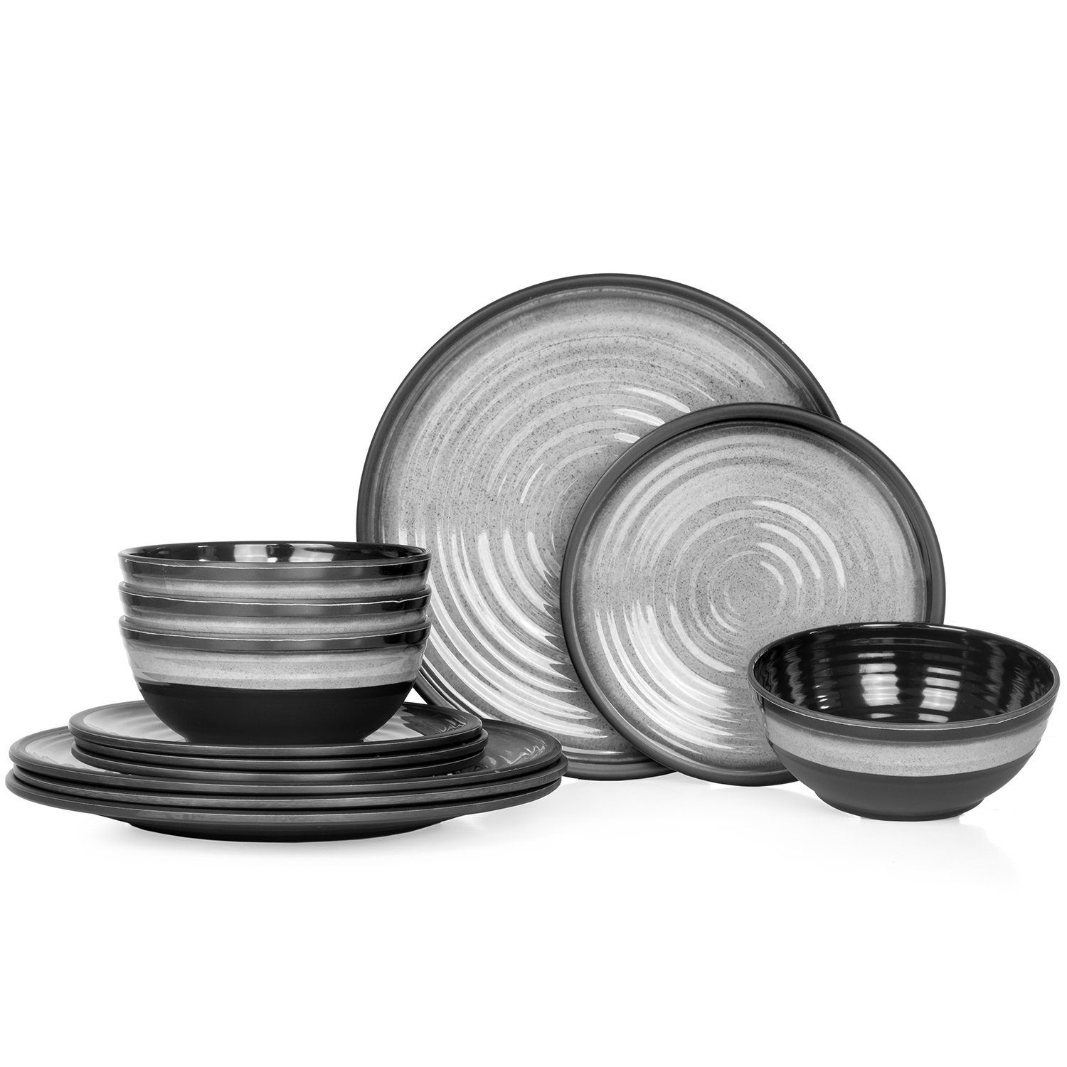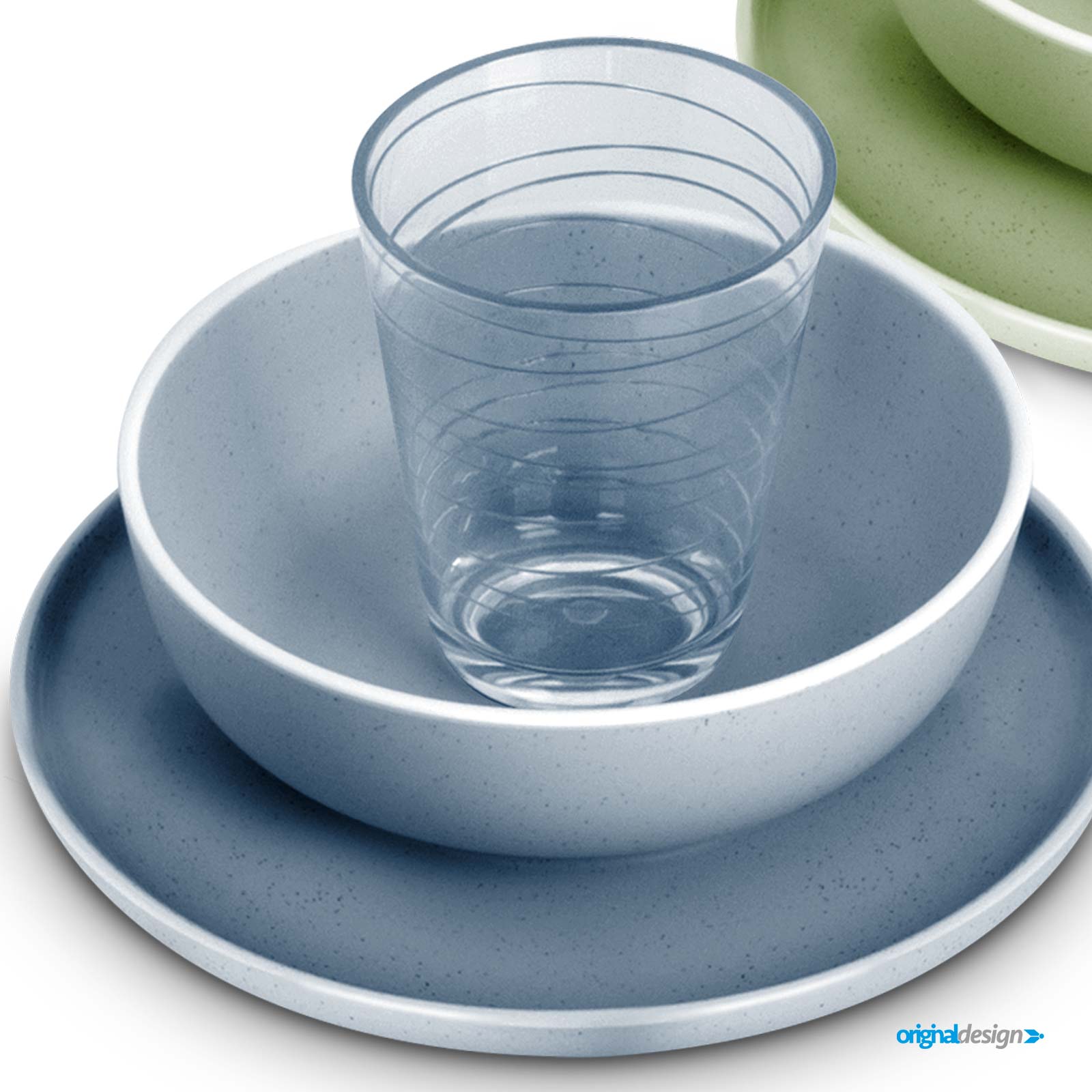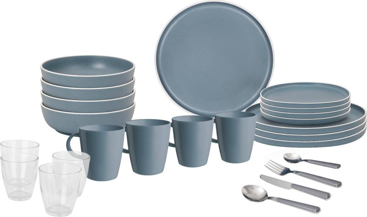 Perfektes Geschirr für dein nächstes Outdoor-Abenteuer! Dieses 36-teilige Melamin-Set ist ideal für Camping, Picknick oder Gartenparty. Enthalten sind alles, was 4 Personen brauchen: Teller, Dessertteller, Suppenteller, Becher und Gläser. Das Melamin-Geschirr ist super robust - es bricht nicht, kratzt nicht und ist spülmaschinenfest. Selbst bei Hitze oder Kälte verformt es sich nicht. Die praktischen Anti-Rutsch-Ringe an der Unterseite verhindern lästiges Rutschen auf dem Campingtisch. Die Hot Mug Becher halten deine Getränke lange warm und sind bis 95°C befüllbar. Alles BPA-frei und lebensmittelecht - also absolut unbedenklich für dein Essen. Das Design in dezentem Grau sieht modern aus und passt zu jeder Gelegenheit. Leicht zu reinigen, platzsparend verpackt und einfach mitzunehmen. Ob beim Festival, am See oder im eigenen Garten - mit diesem Geschirr machst du jedes Outdoor-Essen zum gemütlichen Erlebnis. Endlich kein Einweg-Geschirr mehr!