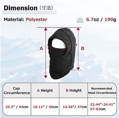 Wenn's draußen kalt wird, brauchst du Schutz für Kopf und Gesicht! Diese Fleece Balaclava ist dein bester Freund im Winter. Aus weichem Polyester-Fleece - warm, winddicht und hautfreundlich. Einheitsgröße für Kopfumfang 58-62cm, also für die meisten Erwachsenen passend. Kombiniert Sturmhaube, Gesichtsmaske, Mütze und Schal in einem - super praktisch! Perfekt für Radfahren, Wandern, Skifahren, Snowboarden, Motorradfahren und andere Outdoor-Aktivitäten. Leicht zu reinigen und schnell trocknend. Auch als Helmeinlage geeignet oder für Halloween-Kostüme. Azarxis bietet 20 Monate Garantie - da bist du auf der sicheren Seite. Einfach überziehen und schon bist du vor Kälte und Wind geschützt. Ob beim Winter-Sport oder auf dem Weg zur Arbeit - mit dieser Maske frierst du nicht mehr. Einfach ein Must-Have für die kalte Jahreszeit!
