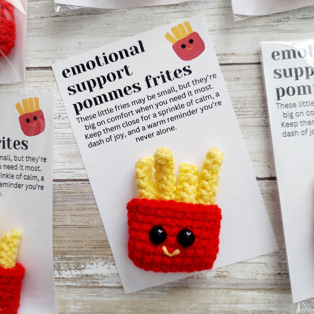 Total niedliche gestrickte Pommes-Puppe! Diese süße Emotionale Unterstützung in Pommes-Form bringt sofort ein Lächeln ins Gesicht. Handgehäkelt aus weicher Wolle, angenehm weich und leicht.