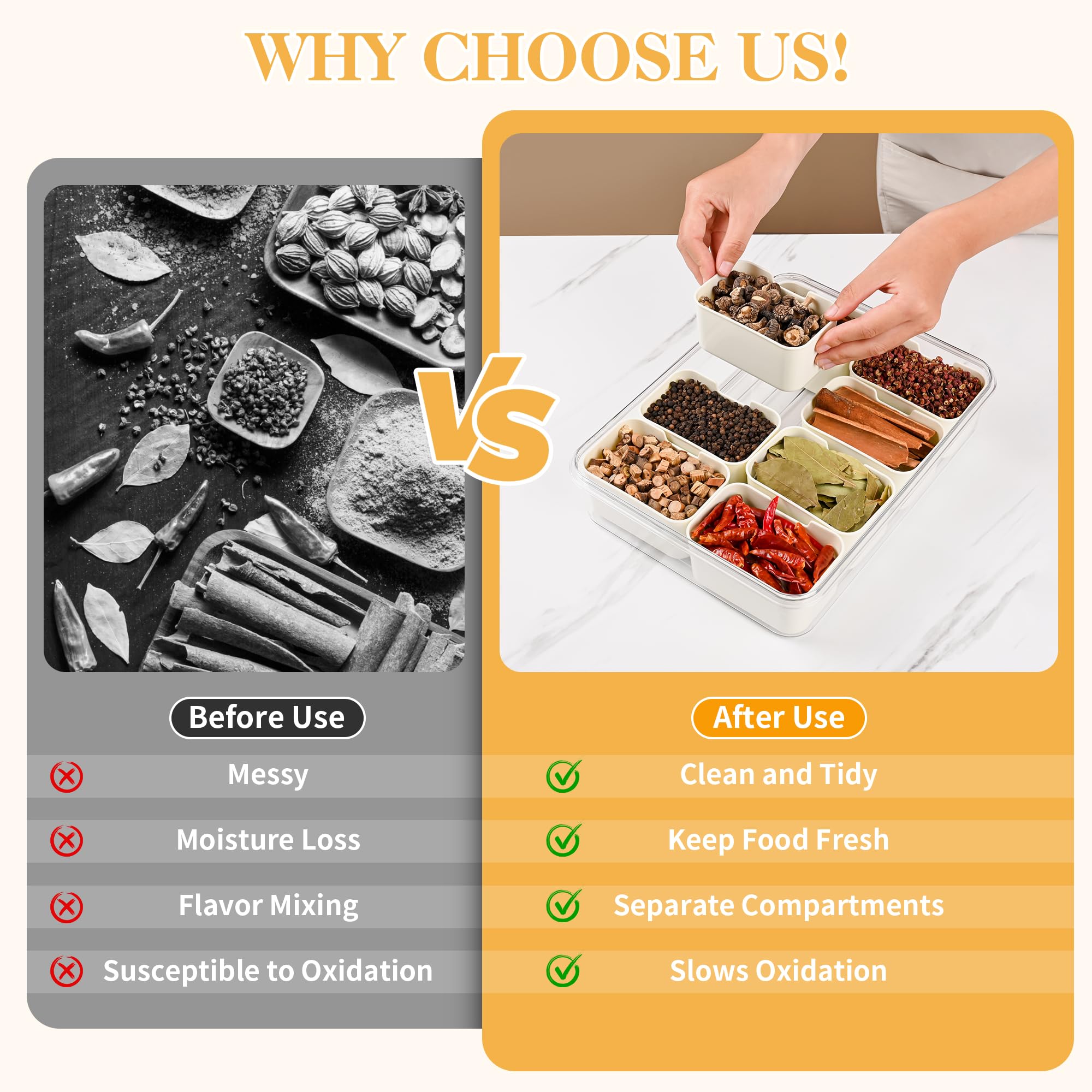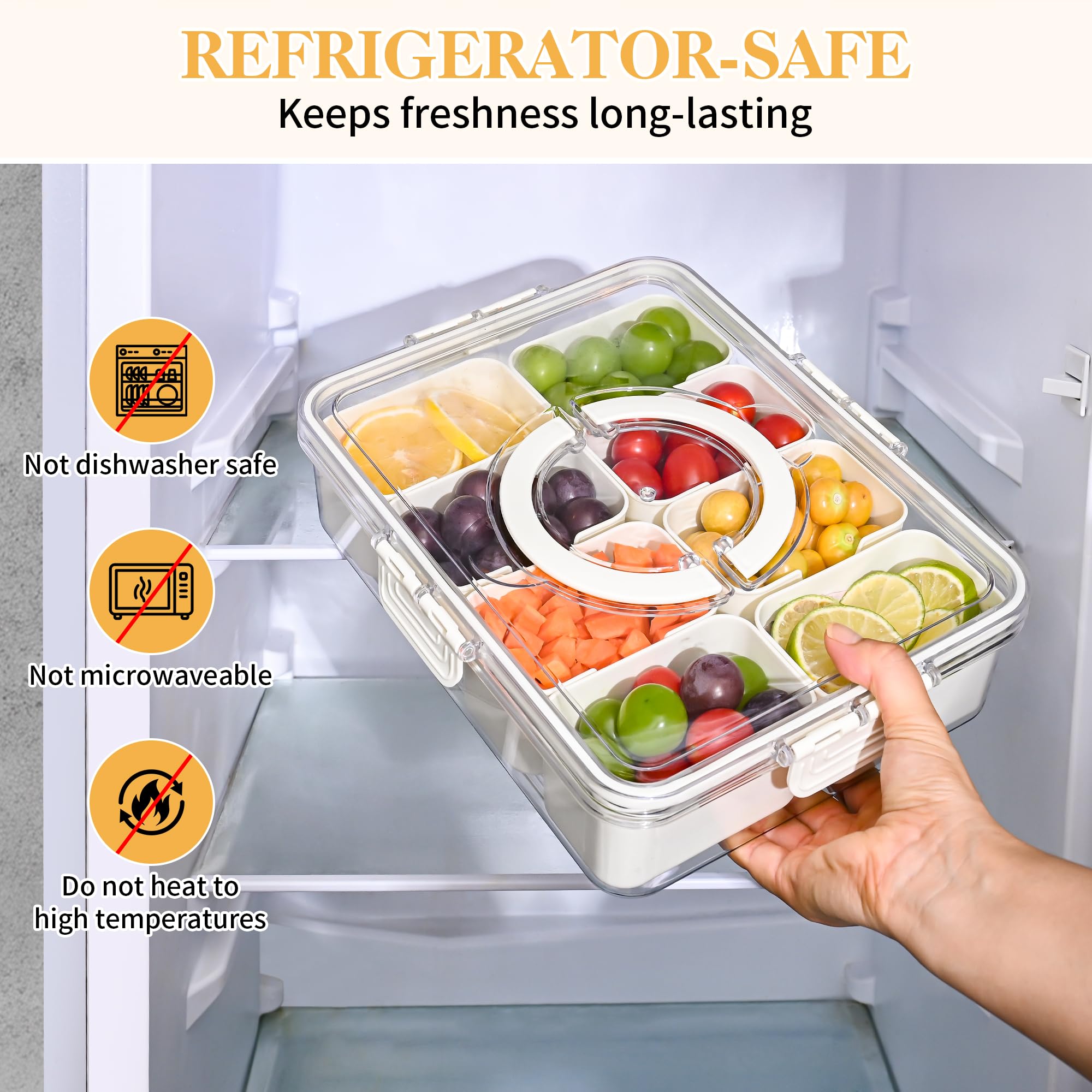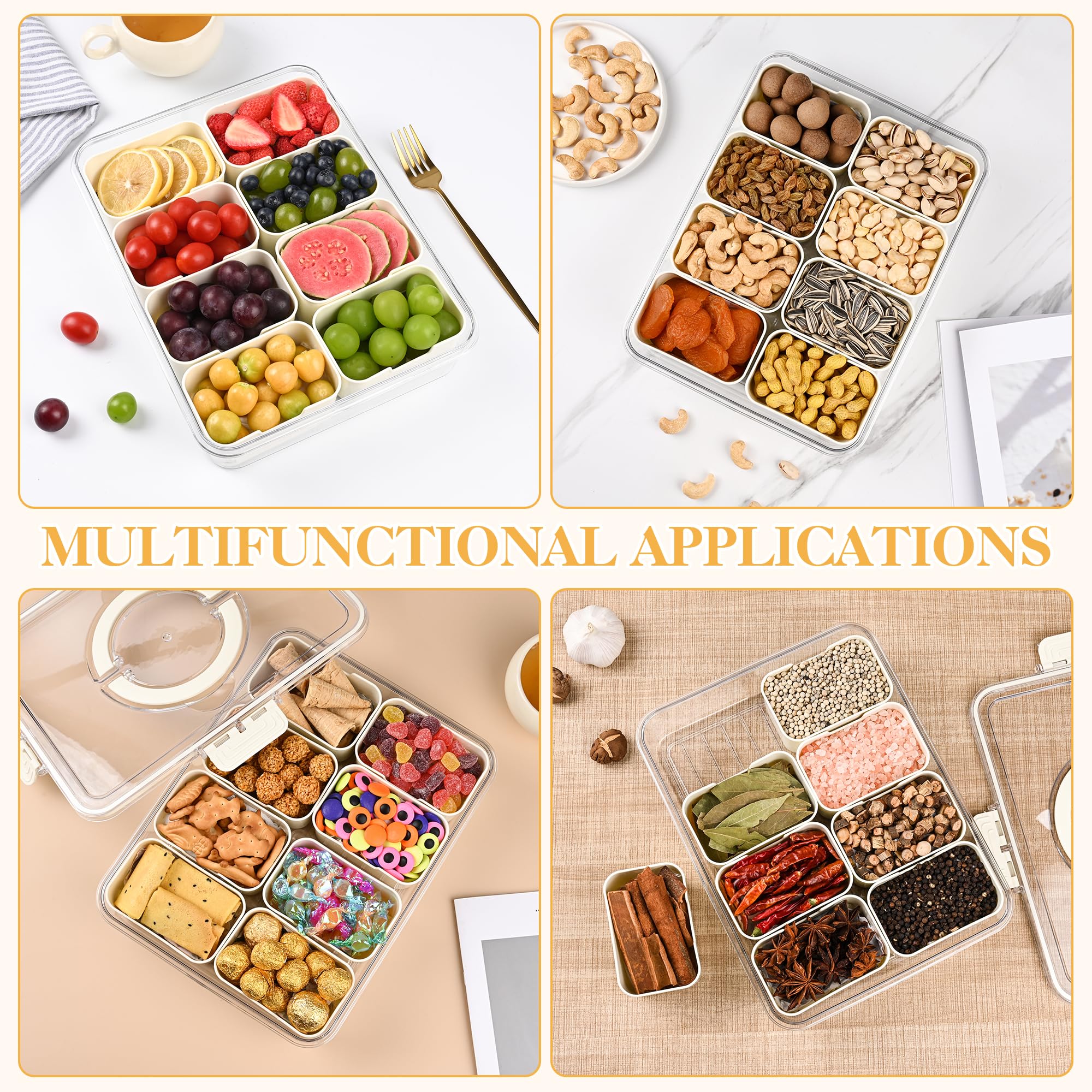 So macht Snacken Spaß! Diese praktische Snackbox von OAKENCREST hat 8 herausnehmbare Fächer - perfekt um verschiedene Leckereien getrennt zu halten. Ob Obst, Gemüse, Kekse oder Nüsse, nichts vermischt sich mehr! Aus lebensmittelechtem PP-Material, BPA-frei und geruchsneutral. Der Deckel mit Silikondichtung und Druckknöpfen ist absolut auslaufsicher - ideal für unterwegs. Die klappbaren Griffe machen das Tragen super einfach. Spülmaschinenfest (nur die Box, nicht der Deckel) und vielseitig verwendbar. Perfekt für Picknicks, Lunchbox oder als Organizer im Kühlschrank!