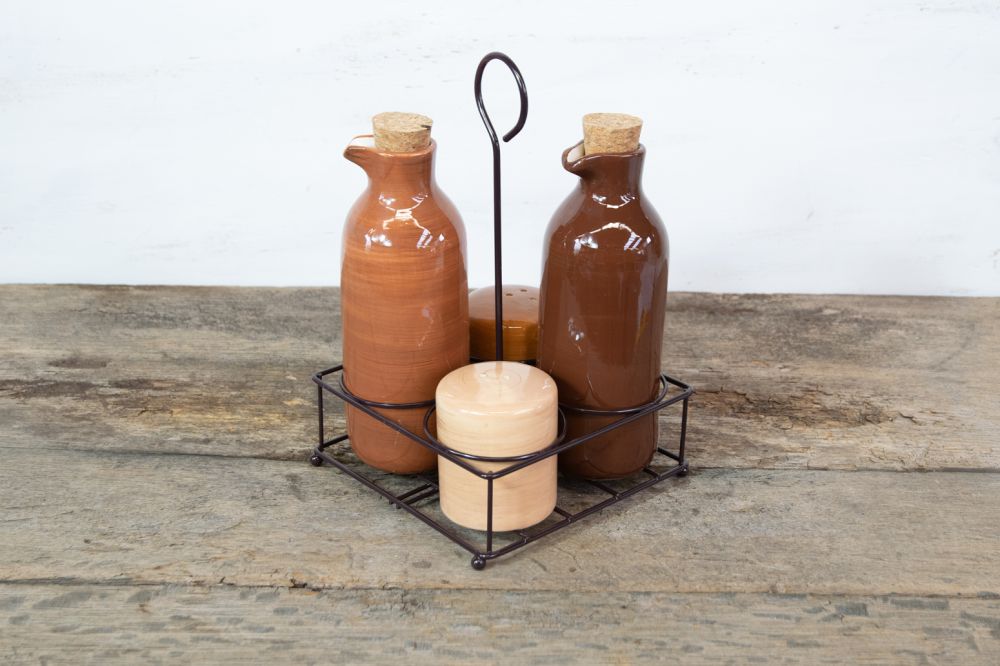 Hey, dieses 4-teilige Gewürzset ist sowohl stylisch als auch praktisch! Enthält Ölausgießer, Essigausgießer, Salz- und Pfefferstreuer plus einen schicken Präsentationsständer aus Bambus und Keramik. Mit praktischem Chromgriff - super easy zum Tragen vom und zum Esstisch. Robustes Design, einfach nachzufüllen und immer wieder zu verwenden. Maße: 19x18x18cm. Reinigung? Ganz easy - Keramikteile in warmem Seifenwasser waschen, Bambus mit feuchtem Tuch abwischen. Damit wird dein Esstisch zum echten Hingucker!
