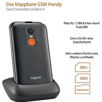 Perfekt für die Generation 60+! Das Gigaset GL595 ist genau das richtige Handy für alle, die kein kompliziertes Smartphone brauchen. Mit extra großen Tasten und super lesbarer Schrift auf dem 2,8-Zoll Display fällt das Telefonieren und Simsen richtig leicht. Das Beste: Die rote SOS-Taste auf der Rückseite! Im Notfall einfach drücken und schon werden deine gespeicherten Kontakte alarmiert - das gibt Sicherheit für dich und deine Angehörigen. Mit IP44 Schutz hält das Handy auch mal Spritzwasser und Staub aus. Drei Direktwahltasten für deine Lieblingskontakte, eine Vertrauensliste und Blockierfunktion gegen unerwünschte Anrufe machen es komplett. Inklusive praktischer Ladestation, USB-C Kabel und Akku - einfach auflegen und laden! Ohne Vertrag nutzbar, einfach SIM-Karte rein und lostelefonieren. Für Oma, Opa oder alle, die es einfach mögen - dieses Handy macht wirklich was es verspricht!