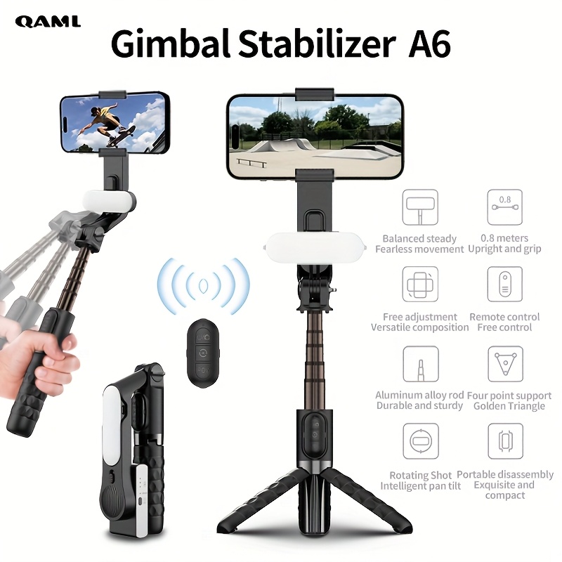 Film wie ein Profi - ganz einfach! Dieser Handy Gimbal mit automatischer Gesichtserkennung und 360° Tracking hält dich immer im Fokus. Perfekt für Vlogs, TikTok, Live-Videos oder Online-Meetings. Die intuitive Gestensteuerung lässt dich mit einer 'OK'-Geste starten und mit geöffneter Hand pausieren - komplett freihändig! Kein App-Download nötig, kompatibel mit iPhone und Android. Integrierte LED-Lichter sorgen für perfekte Ausleuchtung. Als Stativ vielseitig einsetzbar, mit 1/4\-Schraube für zusätzliches Zubehör. Bis zu 8 Stunden Akkulaufzeit und Bluetooth 5.2 Fernbedienung geben dir maximale Freiheit. Dein smarter Begleiter für gestochen scharfe, ruckelfreie Aufnahmen!