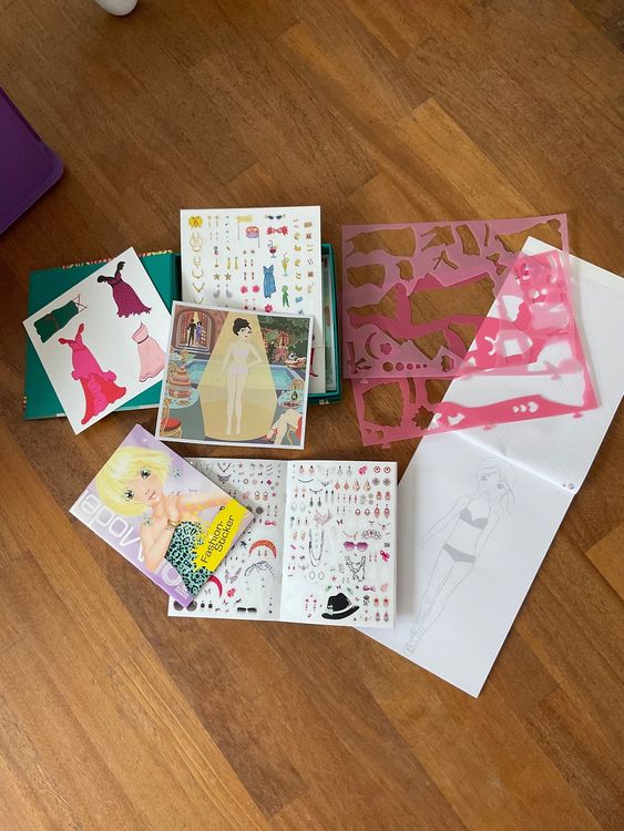 Kreativität pur für kleine Mode-Designerinnen! Dieses folia Schablonenbuch verwandelt deine Tochter in eine echte Fashion-Designerin. Mit 36 tollen Malvorlagen und 5 praktischen Schablonen entstehen im Handumdrezen die schicksten Mädchen-Outfits. Ob trendige Kleider, coole Accessoires oder ganze Styles - hier kann der Kreativität freien Lauf gelassen werden. Der riesige Stickerbogen mit unzähligen Motiven macht jedes Kunstwerk noch perfekter. Einfach Schablonen auflegen, nachzeichnen, ausmalen und mit Stickern verzieren - schon ist ein neues Mode-Meisterwerk fertig! Perfekt für Regentage, Kindergeburtstage oder einfach so. Fördert die Feinmotorik und den künstlerischen Ausdruck. Das komplette Set in einem praktischen Block - alles dabei, was das Künstlerherz begehrt. Deine kleine Designerin wird stundenlang beschäftigt sein und stolz ihre Kreationen präsentieren!