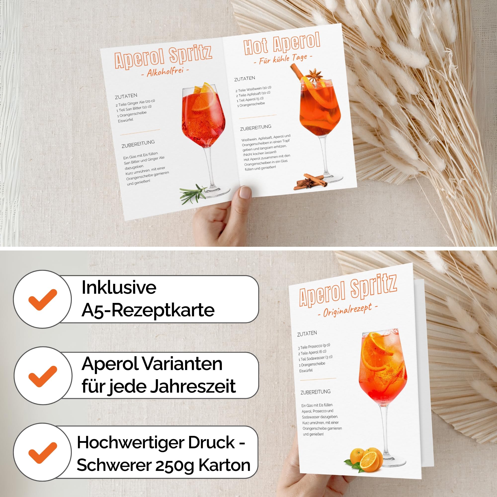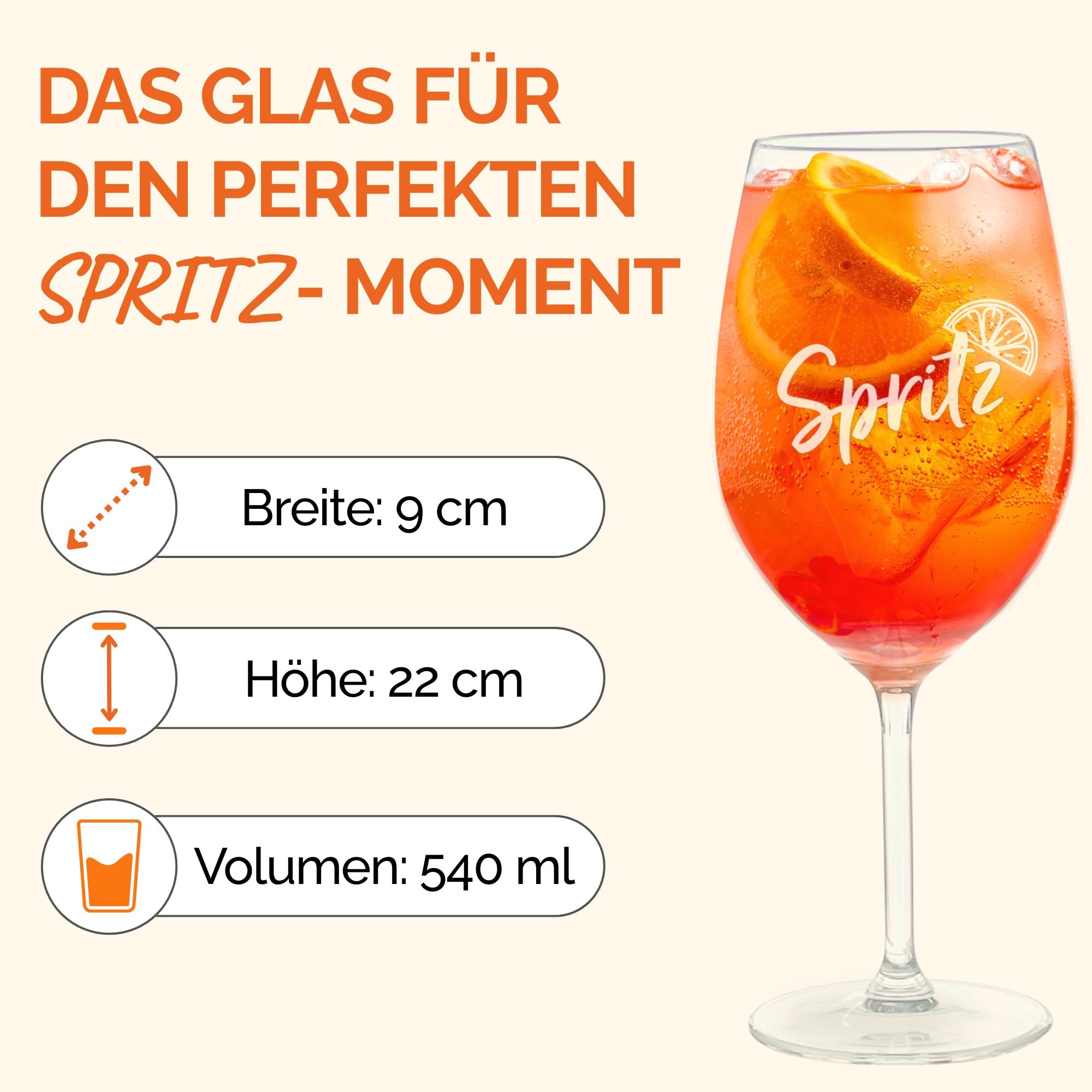 Ciao Bella! Mit diesen Aperol Spritz Gläsern wird jeder Drink zum Urlaubsfeeling. Das 2er-Set kommt direkt aus Deutschland und hat die perfekte Mischskala direkt ins Glas graviert - kein Rumprobieren mehr! Einfach nach der 3:2:1-Formel befüllen: 160 ml Prosecco, 90 ml Aperol und 55 ml Soda Wasser, dazu Eis und eine Orangenscheibe - und schon hast du den perfekten Aperol Spritz, jedes Mal! Mit 540 ml Fassungsvermögen ist reichlich Platz für deinen Lieblingscocktail. Die Gläser sind aus stabilem Kristallglas und komplett spülmaschinenfest, die Gravur verblasst also nicht, egal wie oft du sie spülst. Nicht nur für Aperol Spritz super - auch für Limoncello Spritz, andere Cocktails oder einfach als elegante Saftgläser machen sie eine gute Figur. Das moderne Design ist ein echter Hingucker auf jeder Gartenparty, beim Dinner oder einfach auf dem Balkon. Perfekt als Geschenk für Aperol-Liebhaber oder um deine eigene Barkollektion aufzuwerten. Bruchsicher verpackt kommt das Set bei dir an, sodass nichts kaputt gehen kann. Prost!