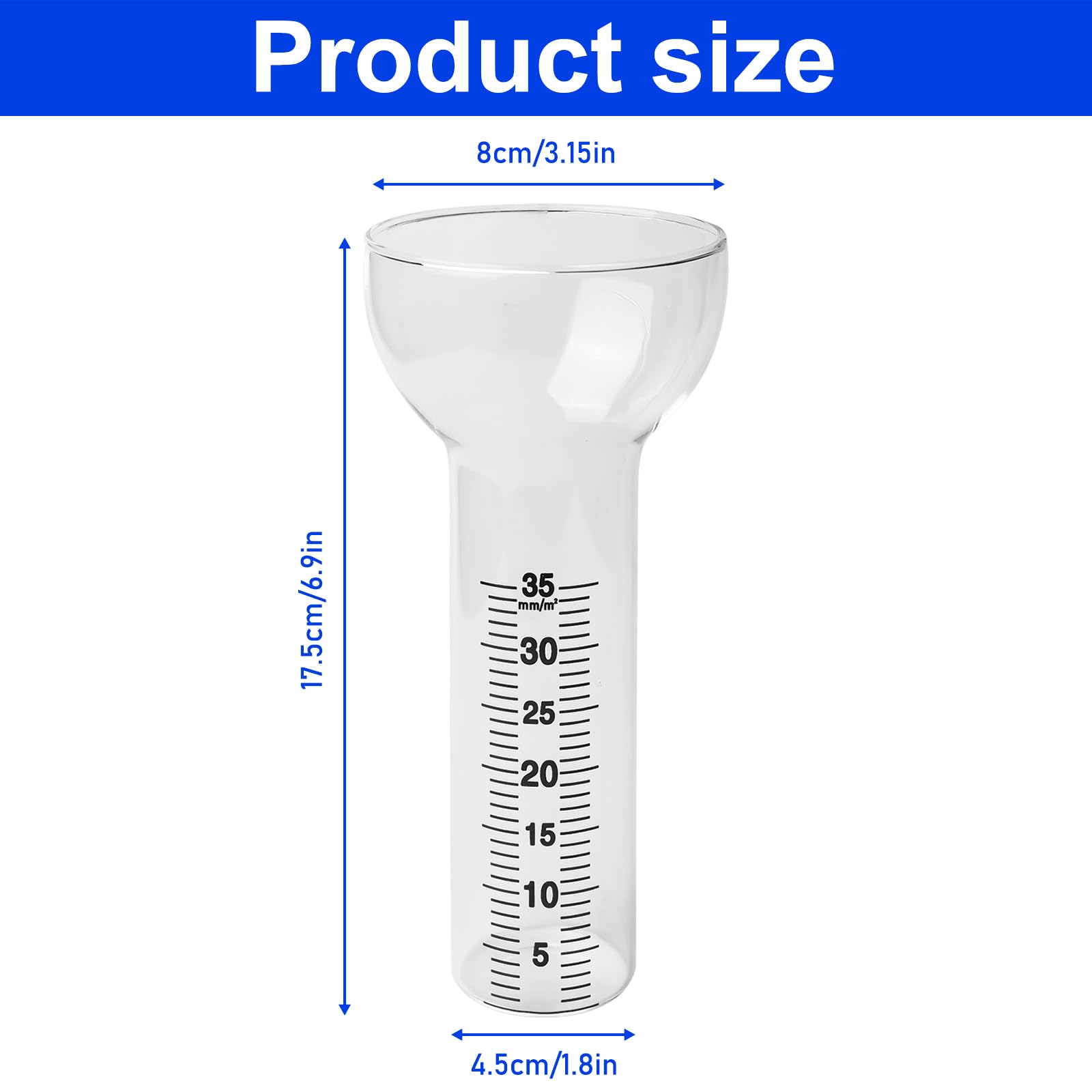 Hey Gartenfreunde! Mit diesen beiden Regenmessern aus Glas behältst du immer den Überblick über die Niederschlagsmenge in deinem Garten. Jeder Messer fasst 35ml und hat eine klare, gut ablesbare Skala. Aus robustem Borosilikatglas gefertigt, sind sie frostsicher und halten auch bei tiefen Temperaturen stand. Der trichterförmige Eingang fängt den Regen optimal auf, während der Metall-Erdspieß für einfache Installation sorgt - einfach in den Boden stecken! Perfekt für Hof, Terrasse, Rasen oder Beete. Aber diese Regenmesser sind nicht nur praktisch, sondern sehen auch noch dekorativ aus. Sie bringen Leben in deinen Garten und sind ein tolles Geschenk für alle Hobby-Gärtner und Wetter-Begeisterten. So siehst du immer, ob deine Pflanzen genug Wasser bekommen haben oder ob du gießen musst. Einfach ein nützliches und schönes Accessoire für jeden Gartenliebhaber!