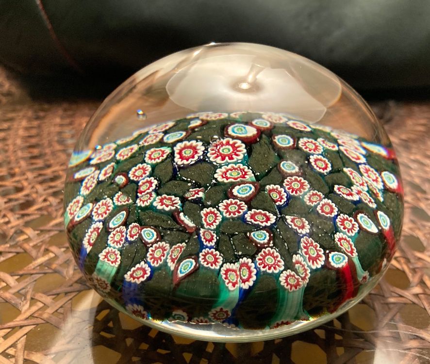 Boah, dieser Millefiori Briefbeschwerer ist ja mal richtig hübsch! Die 8 cm große Glas-Kugel mit ihren bunten Blumen-Mustern ist ein absoluter Hingucker auf jedem Schreibtisch. Aber Moment - das Teil kann mehr als nur Papiere festhalten! Du kannst ihn super als Dekoration im Regal verwenden, als besonderes Accessoire auf dem Sideboard oder einfach als kleines Kunstwerk für die Vitrine. Das traditionelle Millefiori-Verfahren (das bedeutet übrigens 'tausend Blumen') macht jedes Stück einzigartig. Die Farben leuchten richtig schön wenn Licht drauf fällt. Praktisch ist er natürlich auch - ob für wichtige Dokumente, Zeitschriften oder deine Sammlung an Postkarten. So ein schönes Stück Handwerkskunst macht einfach überall was her! Und das Beste: Er ist robust genug für den täglichen Gebrauch, aber schick genug um zu beeindrucken.