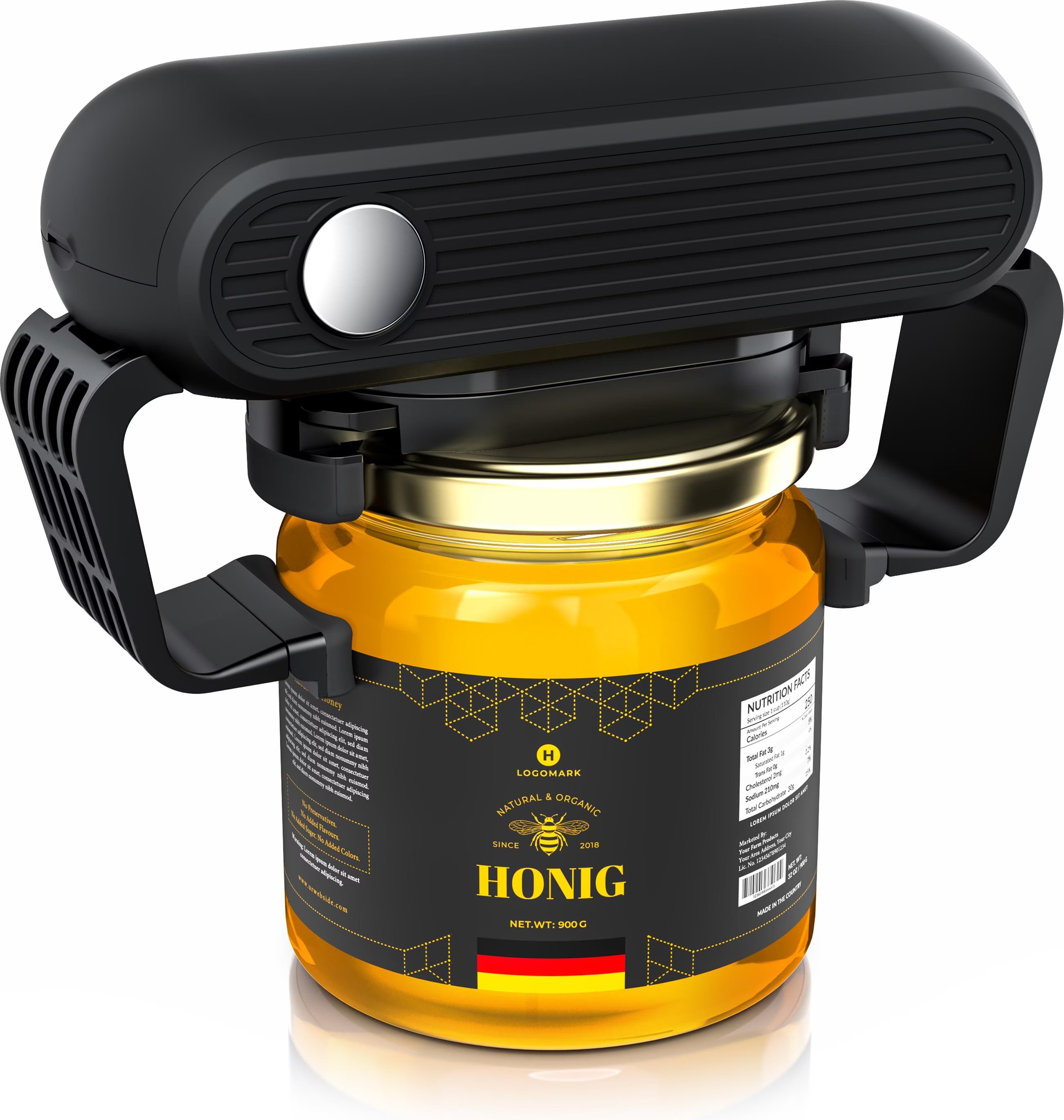 Schluss mit verzweifeltem Herumdrehen an festen Schraubdeckeln! Dieser elektrische Glasöffner von Arendo macht das Öffnen von Gläsern zum absoluten Kinderspiel. Einfach aufsetzen, Knopf drücken und schon löst sich der festeste Deckel in Sekundenschnelle! Für Gläser mit 3,5 bis 10 cm Durchmesser geeignet - von kleinen Marmeladengläsern bis zu großen Einmachgläsern. Aus hochwertigen Materialien mit robustem Getriebe und kraftvollem Motor gebaut, hält dieses Teil ewig. Super für alle, die nicht mehr so viel Kraft in den Händen haben: Senioren, Menschen mit Handicaps oder einfach für Tage, an denen nichts aufgehen will! Mit nur 20x10,5x7 cm ist er handlich und findet in jeder Schublade Platz. Das Gewicht von 445 g (mit Batterien) macht ihn stabil ohne zu schwer zu sein. Einfach Batterien reinlegen und los geht's! Perfekter Küchenhelfer für Köche, Familien oder alle, die einfach keine Lust mehr auf kämpfende Deckel haben. Nicht geeignet für weiche Kunststoffdosen, aber für alle normalen Schraubgläser ein absoluter Lebensretter! Inklusive Batterien und Bedienungsanleitung - sofort einsatzbereit!