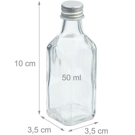 Kreative Geschenkideen gefällig? Dieses 30er-Set Mini-Glasfläschen von Relaxdays ist perfekt für deine selbstgemachten Köstlichkeiten! Mit 50ml Fassungsvermögen und den Maßen 10x3,5x3,5cm sind sie ideal für Liköre, Öle, Gewürze oder Kosmetik. Die Flaschen haben sowohl Schraubverschluss als auch Korken - absolut auslaufsicher! Mit dem beiliegenden Trichter geht das Befüllen ganz einfach ohne Kleckern. Perfekt als Geschenk für Geburtstage, Weihnachten oder Hochzeiten. Die transparenten Flaschen mit silbernen Deckeln sehen einfach edel aus. Einfach befüllen, beschriften und verschenken - deine persönlichen Kreationen werden garantiert begeistern!