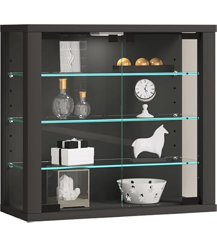 Deine Schätze verdienen den besten Platz! Diese VCM Glasvitrine 'Udina Spiegel' in den Maßen 80x60x25cm ist perfekt für Sammlerstücke, Figuren oder besondere Erinnerungen. Aus ESG-Sicherheitsglas bei Türen, Seiten und Einlegeböden - super stabil und sicher. Die Spiegelrückwand lässt alles größer und eleganter wirken. Zwei variable Glasböden für flexible Höheneinstellung. Einfache Wandmontage, Gestell in Holzstruktur-Optik. Optional erhältlich mit LED-Beleuchtung und Schloss. Platzsparend und modern - ideal für kleine Räume. Seit den 70ern steht VCM für gute Qualität zum fairen Preis. Wichtig: Muss fest an der Wand montiert werden! So werden deine Schätze perfekt in Szene gesetzt und sind sicher verwahrt. Ein echter Hingucker in jedem Wohnraum!