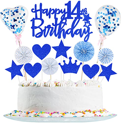 • Gleevio Torten Deko 14. Geburtstag - Glitzer Cake Topper Schwarz Gold