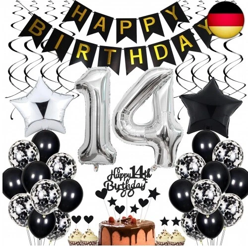 Gleevio Torten Deko 14. Geburtstag - Glitzer Cake Topper Schwarz Gold