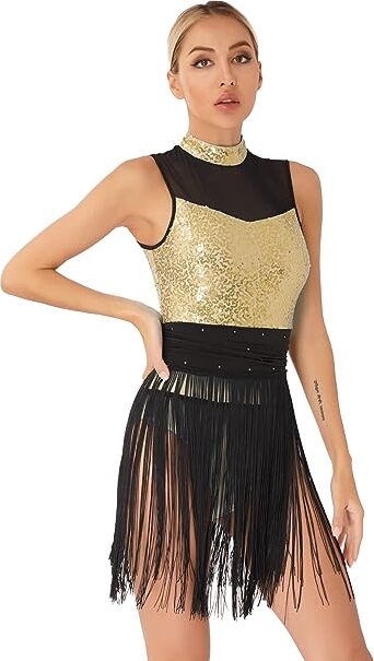 Bereit für den großen Auftritt! Dieses atemberaubende Tanzkleid von iiniim wird dich auf der Tanzfläche zum Star machen. Der glitzernde Bodysuit mit tausenden von Strass-Steinen fängt jedes Licht ein. Die transparenten Mesh-Einsätze an der Taille verleihen eine verführerische Note. Aber das Highlight sind definitiv die abgestuften Fransen, die bei jeder Bewegung mit schwungen - einfach magisch! Aus 80% Polyester, 10% Strass und 10% Elasthan für perfekte Dehnbarkeit und Tragekomfort. Der einteilige Schnitt betont deine Figur und gibt dir maximale Bewegungsfreiheit. Perfekt für Latein-Tänze wie Cha-Cha-Cha und Salsa, aber auch für Ballsaal, Eiskunstlauf oder Tanzwettbewerbe. In verschiedenen Größen von S bis XXL erhältlich - bitte die Größentabelle beachten. Zieh es an und erlebe, wie sich alle Blicke auf dich richten!