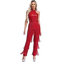 Wow, dieser Jumpsuit ist der absolute Hingucker! Mit 75% Polyester, 15% Elastan und 10% Pailletten bietet er genug Stretch für volle Bewegungsfreiheit beim Tanzen.\n\nDie glänzenden Pailletten und Fransen erinnern an 70er Jahre Disco-Glamour - damit stichst du garantiert aus der Menge heraus! Das kontrastfarbene Design ist mutig und voll im Modetrend.\n\nGrößentipps: S (78cm Brust), M (83cm), L (88cm), XL (93cm), XXL (98cm). Der einteilige Schnitt zeigt eine schlanke Silhouette und ist super praktisch - kein Verrutschen wie bei zweiteiligen Outfits!\n\nPerfekt für Clubs, Tanzveranstaltungen, Themenpartys oder einfach wenn du mal wieder Lust hast, richtig aufzufallen. Einfach anziehen und die Bühne rocken!\n\nLieferumfang: 1 Bodysuit, neu mit Etikett. Bereit für deinen großen Auftritt!