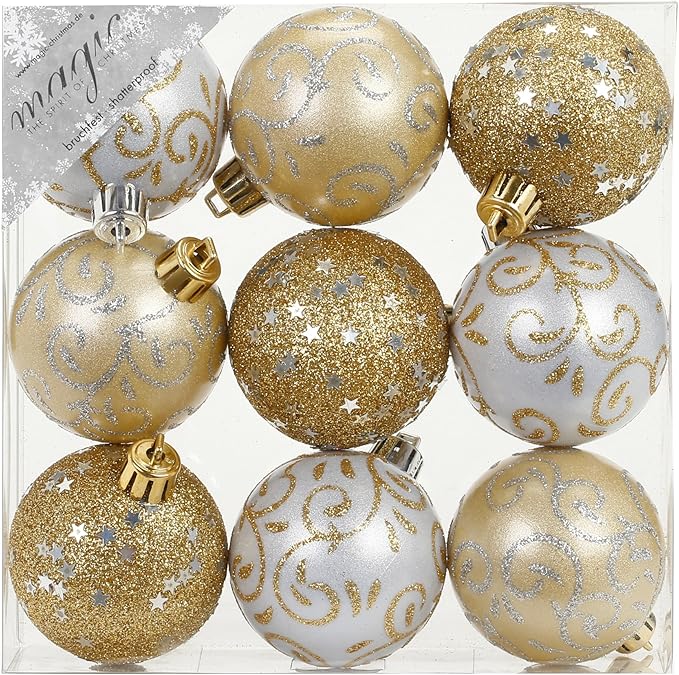 9 STK. Christbaumkugeln 6cm Gold - Bruchfeste Kunststoff Kugeln Für Weihnachtsbaum