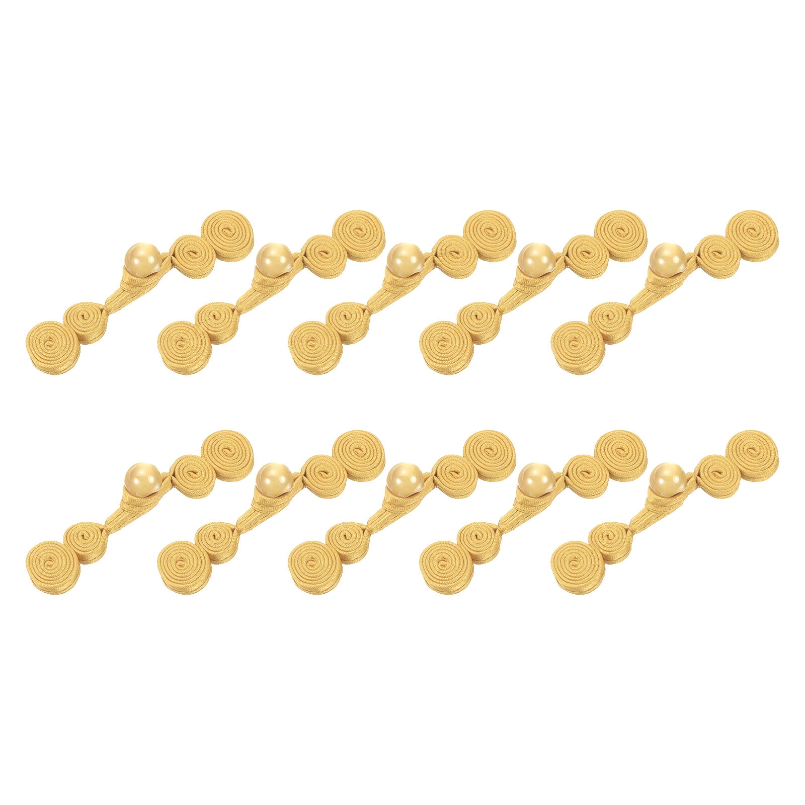 Diese chinesischen Froschknöpfe in Gold sind ja der Hammer! Jedes Set hat 10 Paar dieser traditionellen Verschlüsse aus Polyester - super langlebig und in klassischem Gold. Mit 8x3 cm Größe und doppelter Fünf-Schlaufen-Technik sehen sie einfach edel aus. Perfekt für Umhänge, Mäntel, Cardigans, Schals oder auch Kostüme. Bringen sofort asiatisches Flair an deine Kleidung! Einfach annähen und staunen, wie professionell deine Sachen aussehen. Auch super als Geschenk für Näh-Fans oder Leute die was Besonderes mögen. Damit machst du aus einfachen Kleidungsstücken echte Hingucker - ob Alltag oder besonderer Anlass, diese Knöpfe wissen zu beeindrucken!