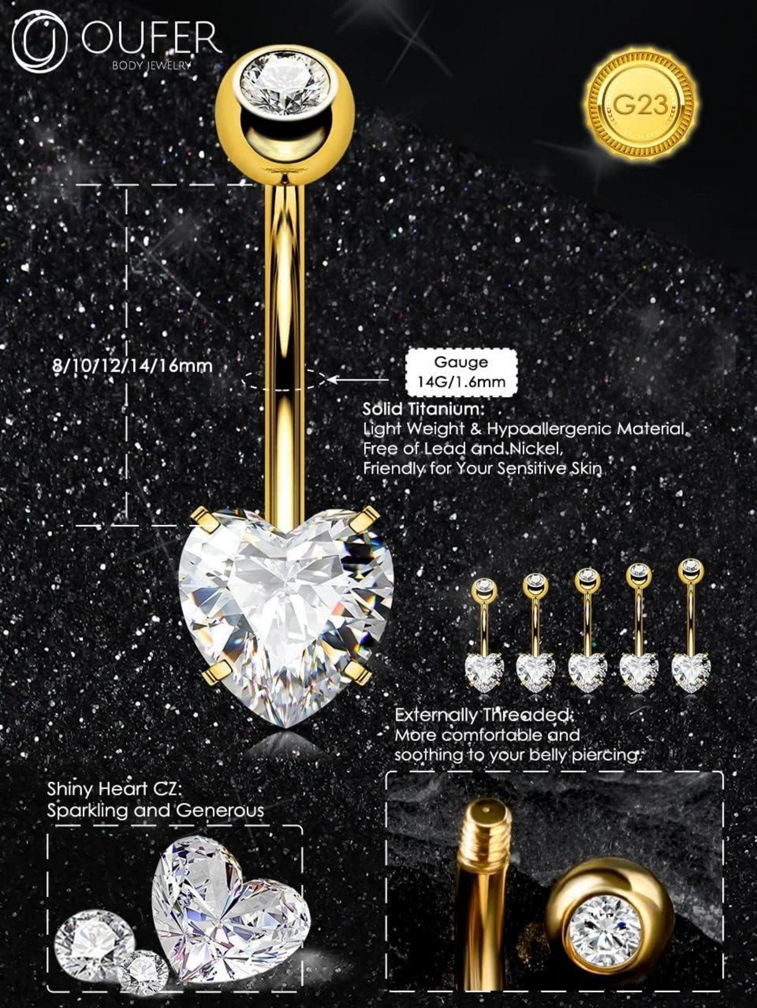 Stylisches und sicheres Bauchnabelpiercing aus reinem Titan - perfekt für alle, die auf Qualität und Tragekomfort Wert legen! Das Besondere: Es ist 'internally threaded', das bedeutet das Gewinde ist im Stab, nicht auf dem Ball. So verhakt sich nichts beim Einsetzen und es ist viel schonender für dein Piercing.\n\nDas Piercing ist 14G stark (1,6 mm) und du kannst zwischen vier verschiedenen Längen wählen: 10, 12, 14 oder 16 mm. Such dir einfach die passende Größe für deine Anatomie aus. Der obere Ball ist 5 mm groß, der untere 8 mm - das gibt schöne Proportionen.\n\nDa es aus Titan ist, ist es nickel-frei und hypoallergen, also perfekt für empfindliche Haut. Rostet nicht und reizt nicht - einfach ideal für frisch gestochene Piercings oder zum Wechseln. Die goldene Farbe sieht super edel aus und passt zu jedem Outfit. Einfach den oberen Ball abschrauben, einsetzen und wieder festschrauben - schon strahlst du mit deinem neuen Schmuck!
