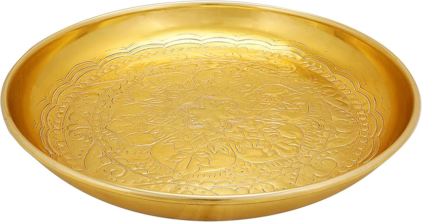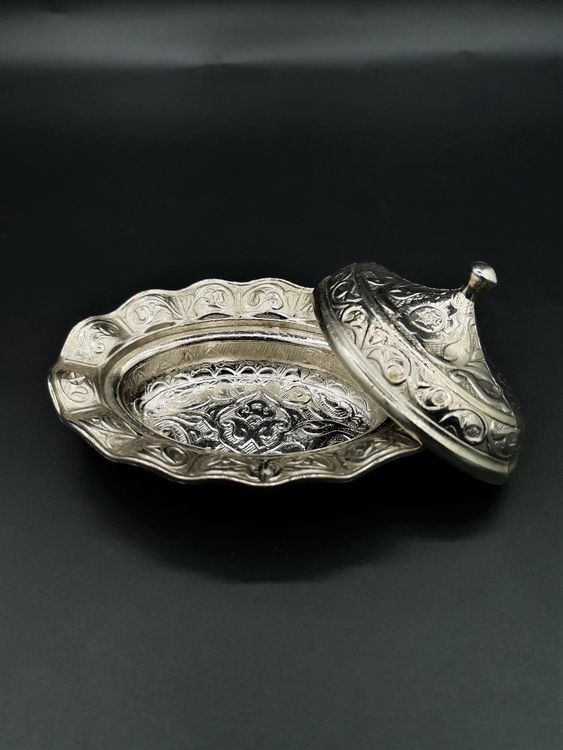Diese wunderschöne Schmuckschale im marokkanischen Stil ist ein echter Hingucker! Handgefertigt aus Messing mit edlem Gold-Finish, perfekt um deinen Schmuck ordentlich zu verstauen oder als stylische Schlüsselablage. Maße: 15cm Durchmesser, 5cm hoch - ideal für Ringe, Armbänder, Ohrringe und andere kleine Schätze. Sieht super aus auf dem Schminktisch, im Badezimmer oder im Eingangsbereich. Auch toll als Kerzenteller oder für Seife. Perfektes Geschenk für Frauen - ob zum Geburtstag, Muttertag oder einfach als kleines Dankeschön. Die orientalische Optik passt super zu Marrakesch-Deko und ist auch als Ramadan-Deko geeignet. Jedes Stück ist ein Unikat, handgefertigt mit Liebe zum Detail. Verleiht jedem Raum sofort ein besonderes Flair!