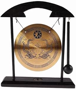 Dieser wunderschöne Mini-Desktop-Gong von Jaqperd bringt Ruhe und Entspannung in dein Zuhause oder Büro. Mit ca. 19x5x21 cm Größe ist er perfekt für den Schreibtisch oder Meditationsbereich. Aus hochwertigem Kupfer gefertigt, erzeugt er einen klaren, beruhigenden Ton, der Ängste lindert und Körper und Geist entspannt. Ideal für Yoga, Meditation oder einfach zum Abschalten nach einem stressigen Tag. Achtung: Vor dem ersten Gebrauch die Schutzfolie abziehen, sonst klingt der Gong nicht richtig. Das Six-Zeichen-Mantra verleiht ihm eine besondere spirituelle Note. Ein tolles Geschenk für alle, die die chinesische Feng Shui-Kultur lieben oder einfach etwas Ruhe in ihren Alltag bringen möchten.