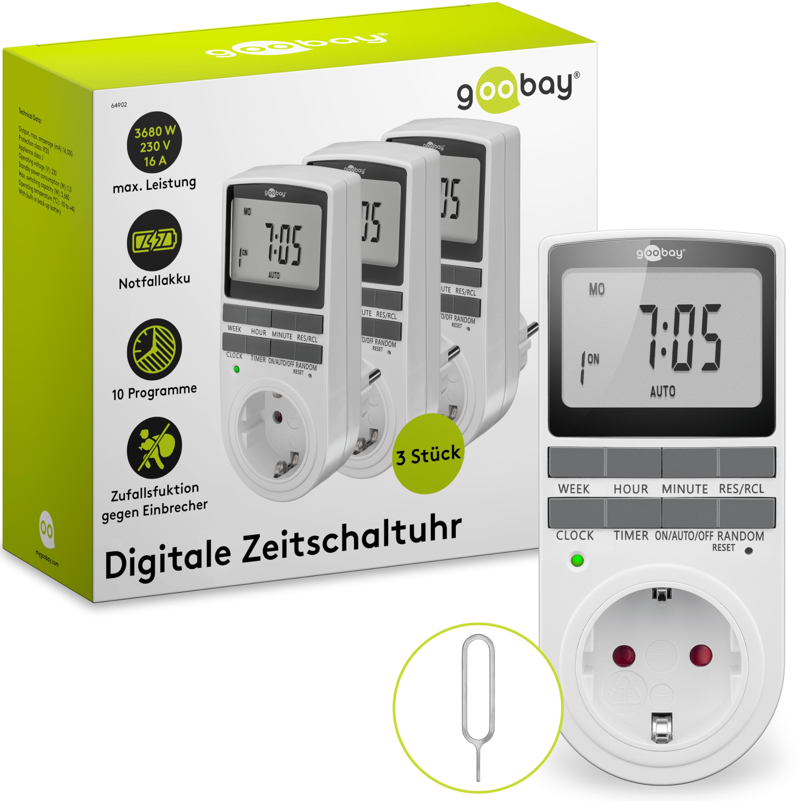 • Goobay 51277 Digitale Zeitschaltuhr - Programmierbar Mit 10 Schaltprogrammen
