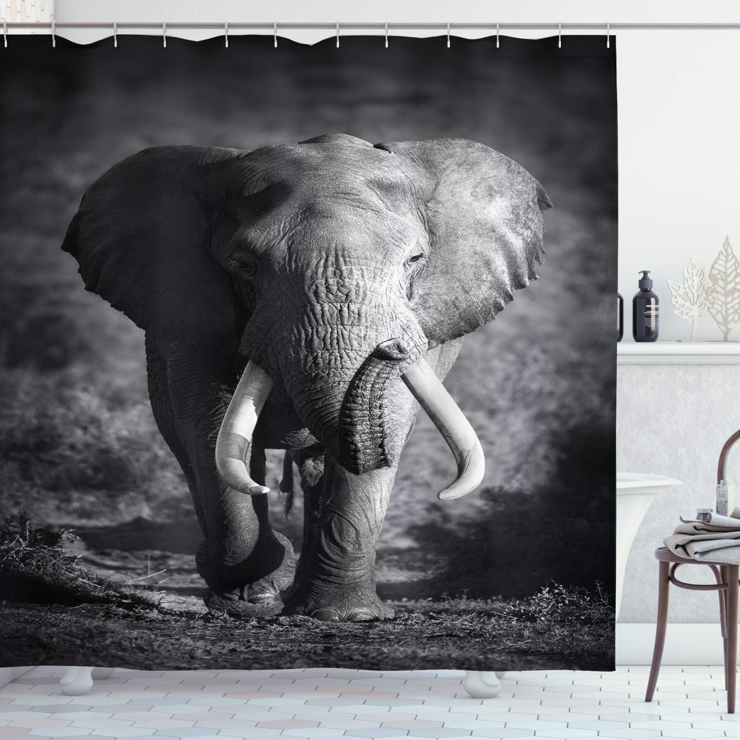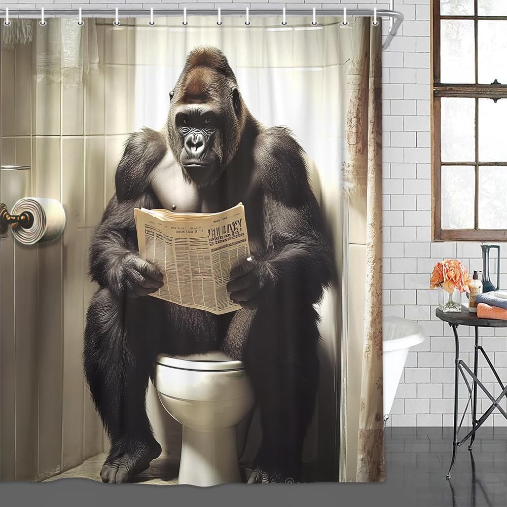 Langweilige Badezimmer ade! Dieser ABAKUHAUS Duschvorhang mit dem coolen Gorilla-Design bringt richtig Leben in dein Bad. Das Tier-Athlet Motiv in Schwarz-Weiß-Grau ist was Besonderes und macht was her. \\n\\nDie Größe von 175x180 cm passt zu den meisten Duschen und Badewannen. Und im Lieferumfang sind gleich 12 Haken dabei - alles also was du brauchst um den Vorhang aufzuhängen. \\n\\nDas Material ist hochwertiges Polyester - wasserabweisend, stabil und behält seine Form. Du brauchst keinen extra Liner, der Vorhang allein hält das Wasser in der Dusche. \\n\\nDie Nähte sind verstärkt (Overlock-Stich) - das heißt, sie reißen nicht so schnell aus und halten lange. Die Farben sind lebhaft gedruckt und bleichen nicht aus. \\n\\nPflege ist super einfach: Einfach in die Waschmaschine stecken, waschen und bei niedriger Temperatur trocknen. Ein bisschen Weichspüler dazu und der Stoff bleibt schön weich. \\n\\nOb für dein eigenes Bad oder als Geschenk - dieser Duschvorhang ist ein Hingucker. Praktisch und schön zugleich! Und bei ABAKUHAUS weiß man, dass man Qualität bekommt - die exportieren weltweit und achten auf gute Verarbeitung. \\n\\nAlso: Wenn du deinem Bad einen individuellen Look verpassen willst - hier ist er! Einfach aufhängen und freuen über das coole Design.