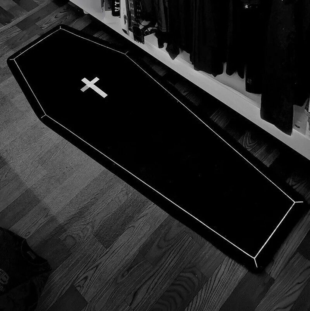 Goth Sarg Teppich 50x130cm - Halloween Bad Matte Schwarz Weich
