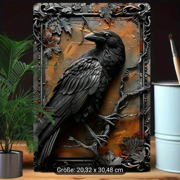 Cooles Gothic-Blechschild für alle, die es etwas anders mögen! Das schwarze Metallschild zeigt eine geheimnisvolle Krähe zwischen bunten Blumen und Schmetterlingen in Vintage-Farben. Maße: 30x20cm - perfekt für Wand oder Garten. Aus hochwertigem Metall, rostfrei und wetterfest. Die 4 vorgebohrten Löcher machen das Aufhängen super einfach. Sieht mega aus in Wohnzimmer, Bar, Kneipe oder Männerhöhle. Auch outdoor im Garten ein Hingucker! Das retro Design passt zu Industrial, Gothic oder Vintage Einrichtungsstil. Ein echter Eyecatcher, der Gespräche anregt. Perfekt als Geschenk für Menschen mit besonderem Geschmack. Mach deine Wände interessanter mit diesem einzigartigen Metallschild!