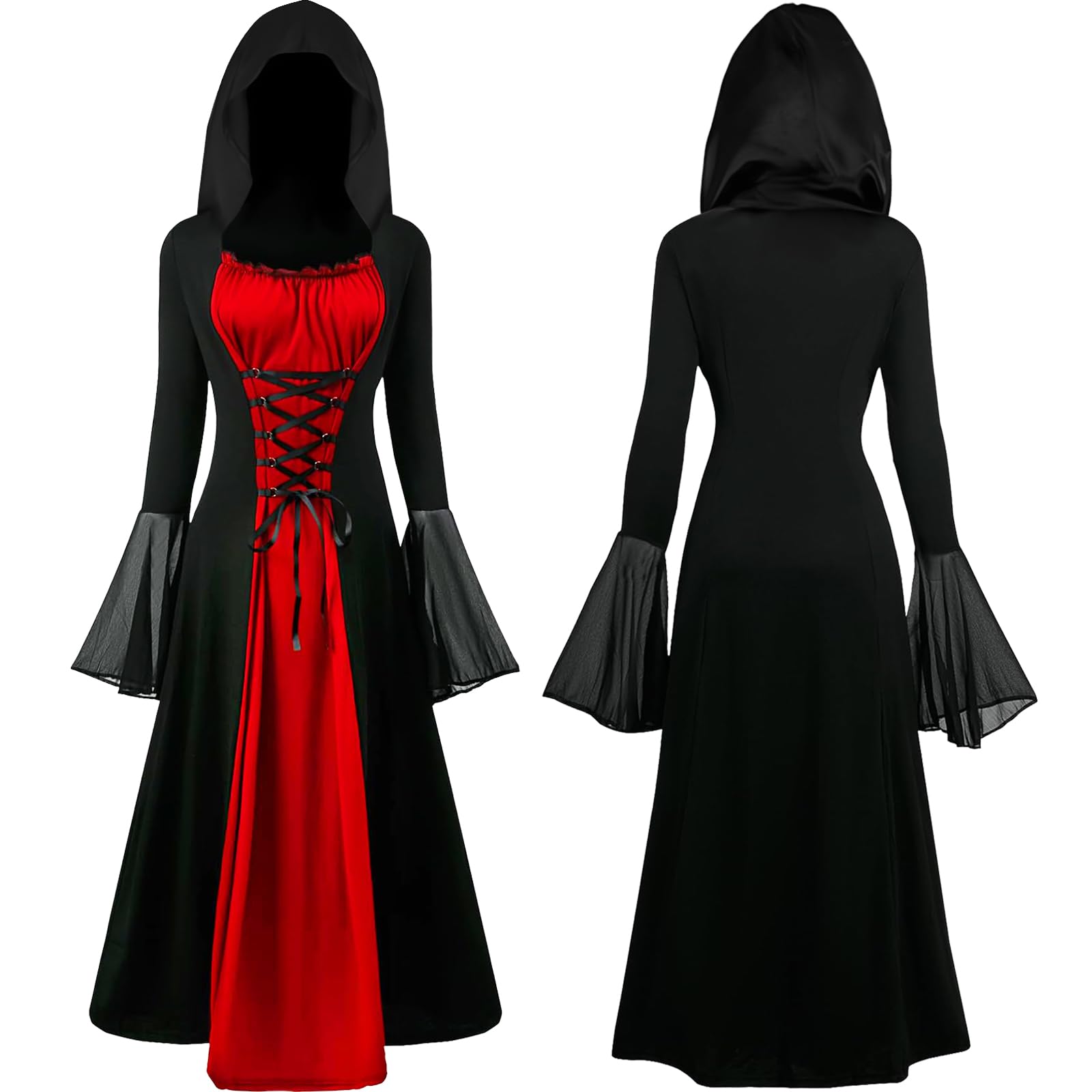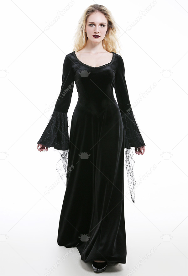 Gothic Kleid Damen Mittelalter Style - Vampir Kostüm Mit Trompetenärmel | Halloween Cosplay