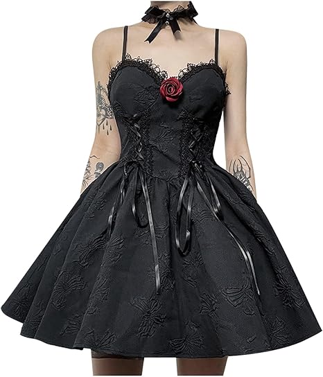 • Gothic Kleid Mit Schnüren - Punk Minikleid Für Halloween & Cosplay