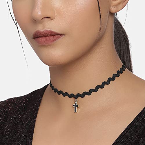 Gothic Kreuz Halskette & Ohrringe Set Schwarz - Kruzifix Schmuck Für Frauen