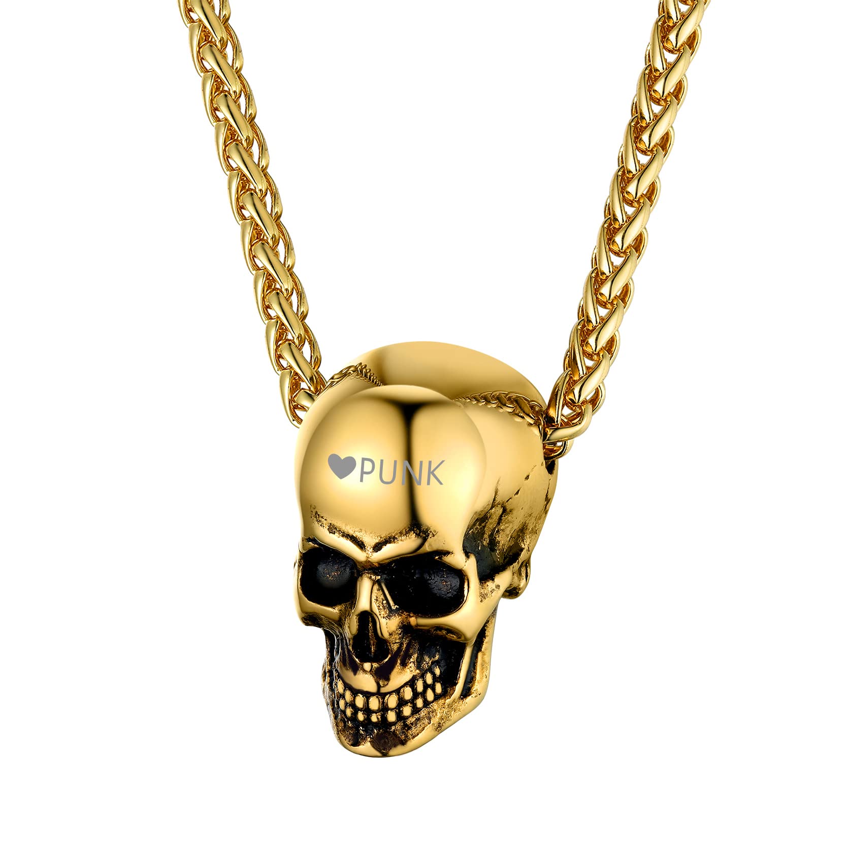 Zeig deinen individuellen Style! Diese coole Gothic-Schädel-Halskette aus poliertem und schwarzem Edelstahl ist perfekt für Biker, Punk-Fans und alle, die es etwas anders mögen. Der Anhänger mit geflochtenem Rand misst 4,4cm in der Länge und 3,8cm in der Breite. Die robuste Weizenkette ist 75cm lang und mit einer sicheren Hummer-Schließe versehen. Mit 62g Gewicht liegt sie angenehm schwer um den Hals. Geliefert in einer stylischen Schmuckschatulle mit Markenlogo. Seit 2011 steht COOLSTEELANDBEYOND für ausdrucksstarken Männerschmuck - dies ist ein weiteres Statement-Stück für deine Sammlung!