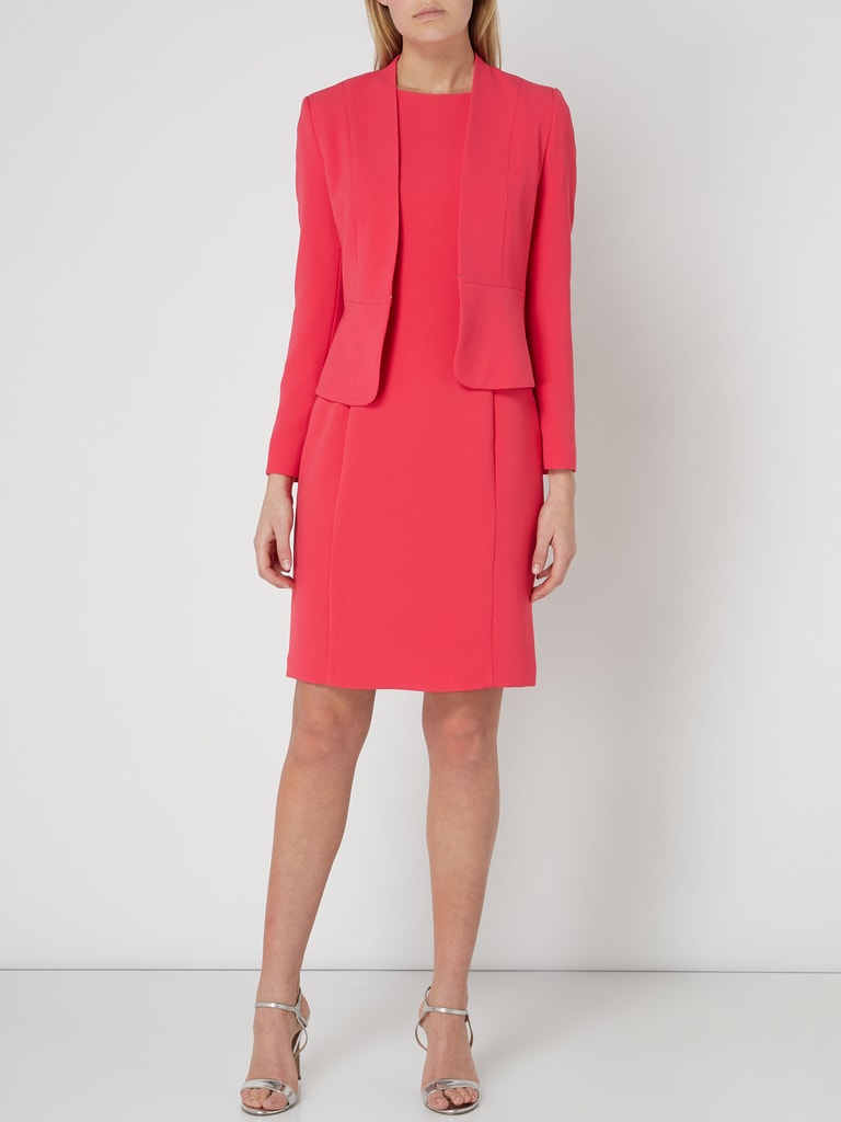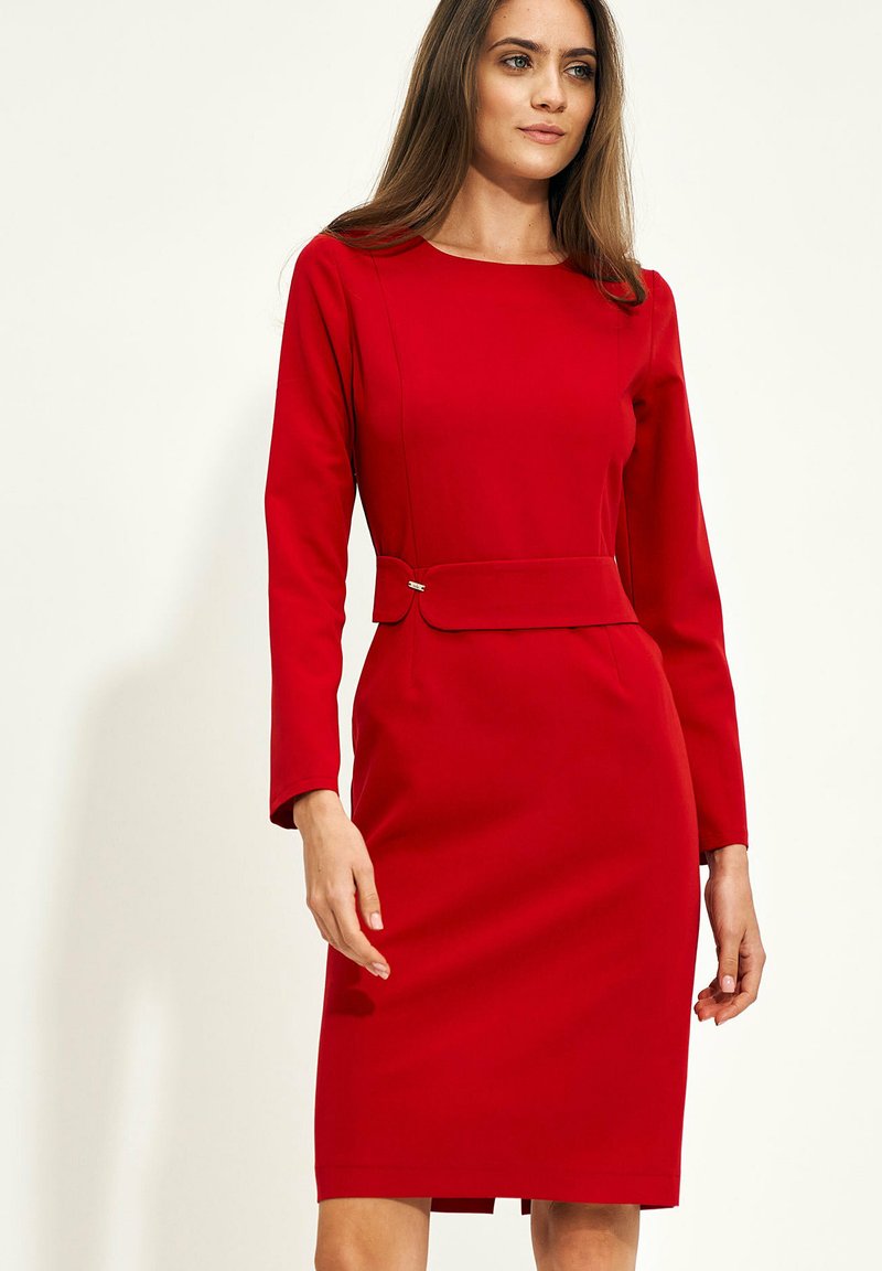 Wow, dieses paino Etuikleid ist einfach nur elegant! In knalligem Rot, figurbetont aber trotzdem bequem. Aus Viskose-Mix mit Elasthan, schmiegt sich super an. Mit schickem Reverskragen und zwei goldenen Logo-Knöpfen - sieht richtig hochwertig aus. Tiefer V-Ausschnitt für einen Hauch von Sinnlichkeit. Perfekt fürs Office, aber auch für Cocktailpartys oder Dates. In Größe S - passt wie angegossen. Einfach anziehen und strahlen - dieses Kleid macht jede Frau zur Königin!