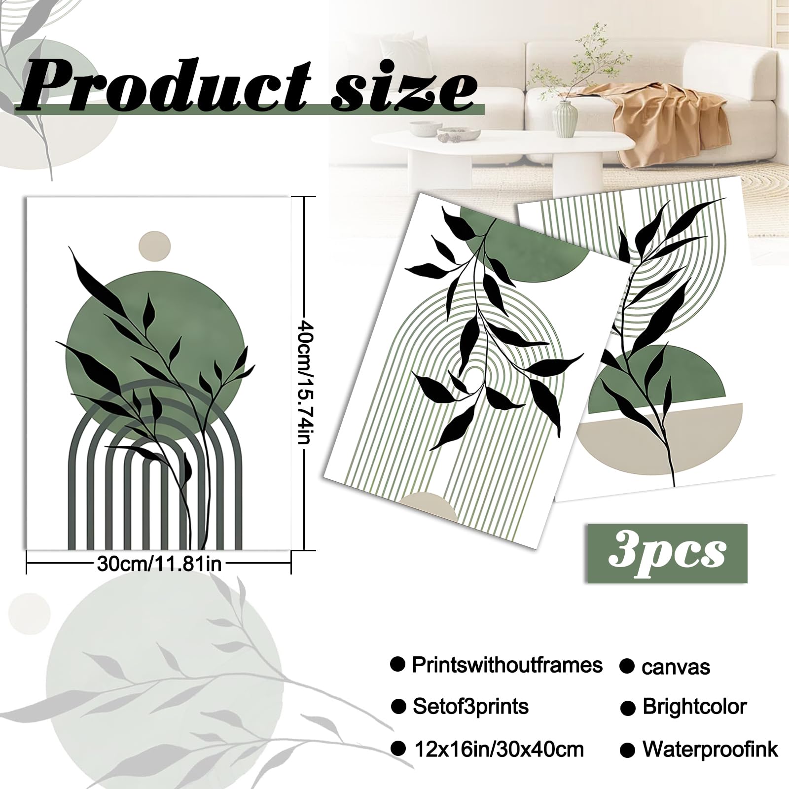 Wow, diese 3-teiligen Wandbilder bringen frischen Wind in deine vier Wände! Im modernen Salbei-Grün mit eleganten Pflanzenlinien und detaillierten Blattskizzen. Jedes Bild misst 30x40cm - perfekt für Wohnzimmer, Schlafzimmer oder Büro. Gedruckt auf hochwertiger Leinwand mit lebendigen Farben die lange halten. Das minimalistische Design passt super zu modernem, skandinavischem oder Boho-Einrichtungsstil. Schafft eine ruhige, natürliche Atmosphäre - wie eine frische Brise im Raum! Einfach aufhängen und sofort wirkt dein Zuhause gleich viel gemütlicher. Ohne Rahmen - du kannst sie direkt an die Wand bringen oder nach Belieben rahmen lassen. Ein echter Hingucker der garantiert Komplimente gibt!
