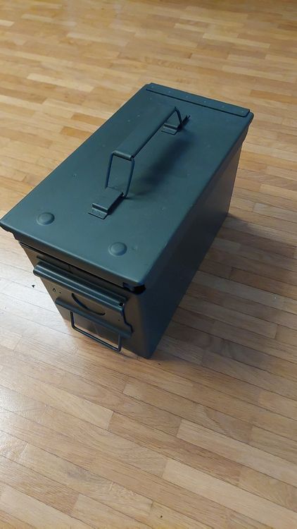 Diese stylische Munitionsbox im US-Army-Design ist ein echter Allrounder! Aus robustem, pulverbeschichtetem Stahl gefertigt, misst sie 33x19x23cm und hält so einiges aus. Mit Gummidichtung im Deckel ist sie spritzwassergeschützt und schützt deine Sachen vor Regen und Staub. Der stabile Griff macht sie tragbar wie einen Koffer, und sie ist sogar stapelbar. Perfekt für Werkzeug, Camping-Ausrüstung, Dokumente oder als coole Deko. Der Deckel kann komplett abgenommen werden und lässt sich zusätzlich mit einem Vorhängeschloss sichern (separat erhältlich). Ob in der Garage, im Garten oder beim Camping - diese Box ist immer praktisch. Wichtig: Nicht zur Aufbewahrung von Waffen oder Munition geeignet, entspricht nicht §36 WaffG.