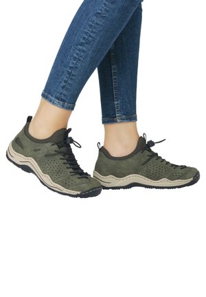Suchst du nach bequemen Sneakern, die auch noch stylisch aussehen? Diese Rieker Low Sneaker in Grün kombinieren Komfort und Trend perfekt! Die herausnehmbare Rieker-Soft-Decksohle ist ein echter Game-Changer - super weich und nachgiebig, perfekt wenn du Einlagen brauchst. Die flexible Laufsohle gibt dir guten Grip und die gepolsterten Schaftränder sowie die Zunge sorgen für extra Komfort. Der coole Farbmix in Grün macht die Sneaker zum Hingucker - ob zu Jeans, Kleid oder Shorts, sie passen immer! Rieker ist bekannt für qualitativ hochwertige Schuhe, die auch nach langer Tragezeit noch gut aussehen und bequem sind. Perfekt für den Alltag, Stadtbummel oder wenn du einfach nur bequem unterwegs sein willst. Deine Füße werden's dir danken!