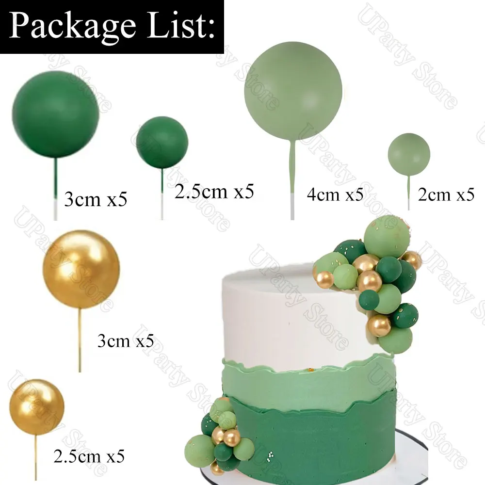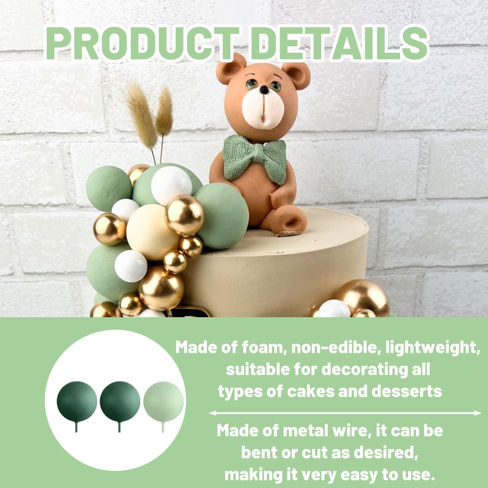 64 wunderschöne Deko-Kugeln in Grün, Gold und Weiß - deine Torten werden zum absoluten Hingucker! Mit 4 verschiedenen Größen: 2cm, 2,5cm, 3cm und 4cm - für abwechslungsreiche Arrangements. Aus sicherem Schaumstoff und Draht - perfekt für Kuchen und Desserts bei Raumtemperatur. Einfach in die Torte stecken - halten bombenfest! Ideal für Hochzeiten, Babypartys, Geburtstage - jeder festliche Anlass. Die elegante Farbkombination passt zu vielen Themen. Mach deine Kreationen professionell und einzigartig! Einfache Handhabung - auch für Hobby-Bäcker geeignet. Verwandele deine Torten in kleine Kunstwerke!