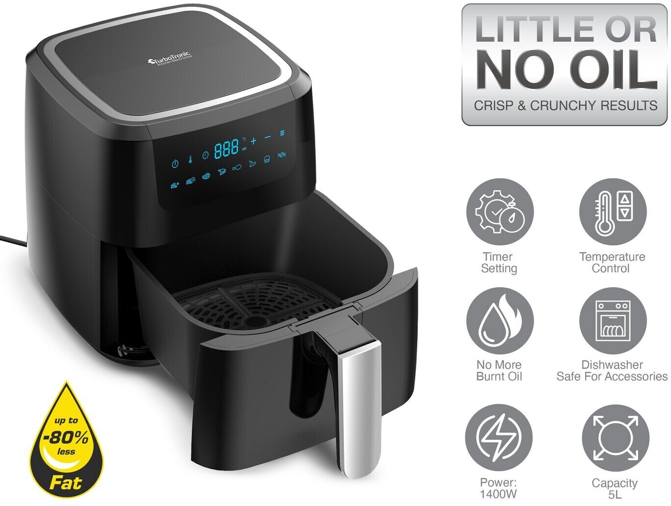 Mensch, diese grüne Heißluftfritteuse von KASANOVA ist einfach genial für alle, die gerne lecker aber gesund kochen wollen! Ohne Öl braten, backen, grillen und rösten - und das alles ohne dass sich Frittiergeruch oder Rauch in deiner Küche verbreitet. Mit 8 verschiedenen Kochprogrammen kannst du wirklich alles zubereiten: Von knusprigem Fleisch über leckeren Fisch bis hin zu Gemüse und sogar Desserts - der Kreativität sind keine Grenzen gesetzt! Die manuelle Anzeige mit den praktischen Drehknöpfen lässt dich Temperatur (bis zu 200°C) und Timer ganz easy einstellen, je nachdem was du gerade kochen willst. Bis zu 3 Portionen passen auf einmal rein - ideal also für Singles, Paare oder kleine Familien. Das grüne Design sieht dabei auch noch super modern und stylisch aus, passt also in jede Küche. Besonders praktisch: Du musst danach nicht ewig die Küche putzen, weil kein Fett in der ganzen Wohnung rumspritzt. Perfekt für Pommes, Hähnchen, Gemüse-Pommes oder sogar für kleine Kuchen! Die Heißluftzirkulation sorgt dafür, dass alles gleichmäßig und knusprig wird - aber eben ohne das ganze Fett. Einfach ein Game-Changer für alle, die nicht auf leckeres Essen verzichten wollen, aber trotzdem auf ihre Gesundheit achten! Und wenn mal Besuch kommt - damit kannst du auch super mehrere Gänge hintereinander zubereiten ohne großen Aufwand.