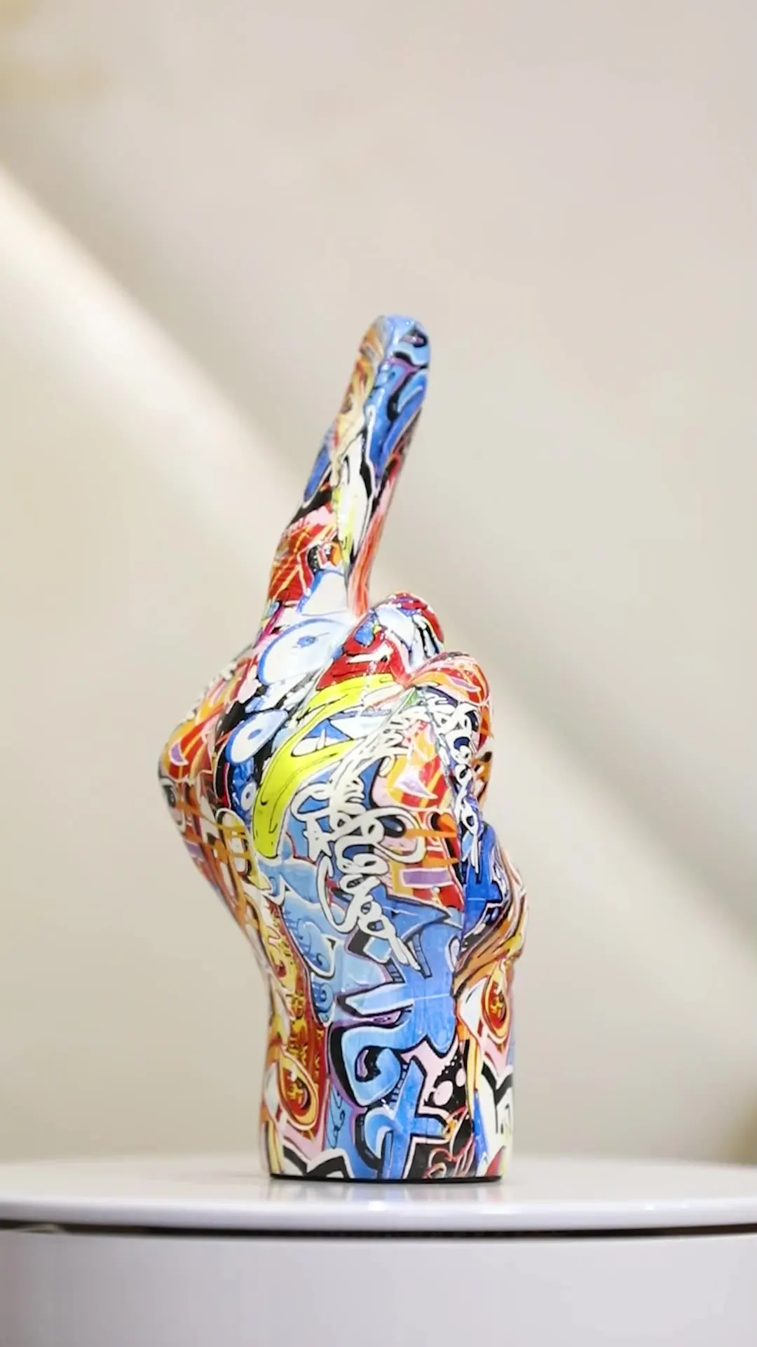 Wow, diese Graffiti-Fingerstatuen sind der absolute Hingucker für dein Zuhause! Handgefertigt aus robustem Harz in bunten Graffiti-Farben. Du bekommst zwei coole Handgesten: Eine Peace-Zeichen (ca. 7,2x6,2x16,3cm) und eine 'Cool'-Geste (ca. 8,2x6x14,9cm). Die abstrakte, künstlerische Textur macht jede Statue zum Unikat. Perfekt für Wohnzimmer, Schlafzimmer oder Arbeitszimmer - sie passen zu jedem Einrichtungsstil! Mit 265g Gewicht haben sie angenehme Präsenz ohne zu überladen. Die klaren Linien und der klassische Stil verleihen deinem Raum sofort mehr Persönlichkeit. Super als Geschenk für Freunde oder einfach für dich selbst. Zeig deinen individuellen Style mit diesen einzigartigen Dekofiguren! Deine Gäste werden begeistert sein.
