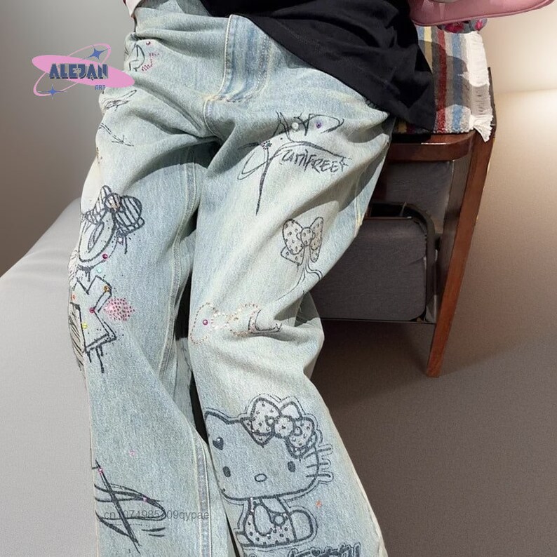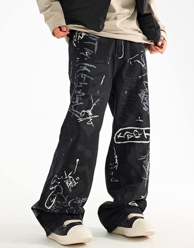 Wow, diese Jeans ist ja mal ein absoluter Hingucker! Die bunten Graffiti-Drucke verleihen ihr einen einzigartigen, urbanen Style, der garantiert auffällt. Mit der hohen Taille und dem weiten Baggy-Schnitt sitzt sie nicht nur superbequem, sondern ist auch total im Trend. Perfekt für alle, die sich von der Masse abheben wollen! Ob auf Festivals, in der Stadt oder einfach im Alltag - mit dieser Hose bist du immer stylisch unterwegs. Aus hautfreundlichem Baumwoll-Mischgewebe ist sie angenehm zu tragen und atmungsaktiv. Die verschiedenen Größen von S bis XXL bieten für jede die passende Passform. Besonders praktisch: Sie lässt sich super mit einfachen Basics kombinieren, wird aber durch die aufwendigen Drucke zum absoluten Statement-Piece. Einfach waschen und im Schatten trocknen lassen - so bleibt die kräftige Farbe lange erhalten. Wenn du auf der Suche nach einer Jeans bist, die Persönlichkeit ausstrahlt, dann ist das hier dein neues Lieblingsteil!