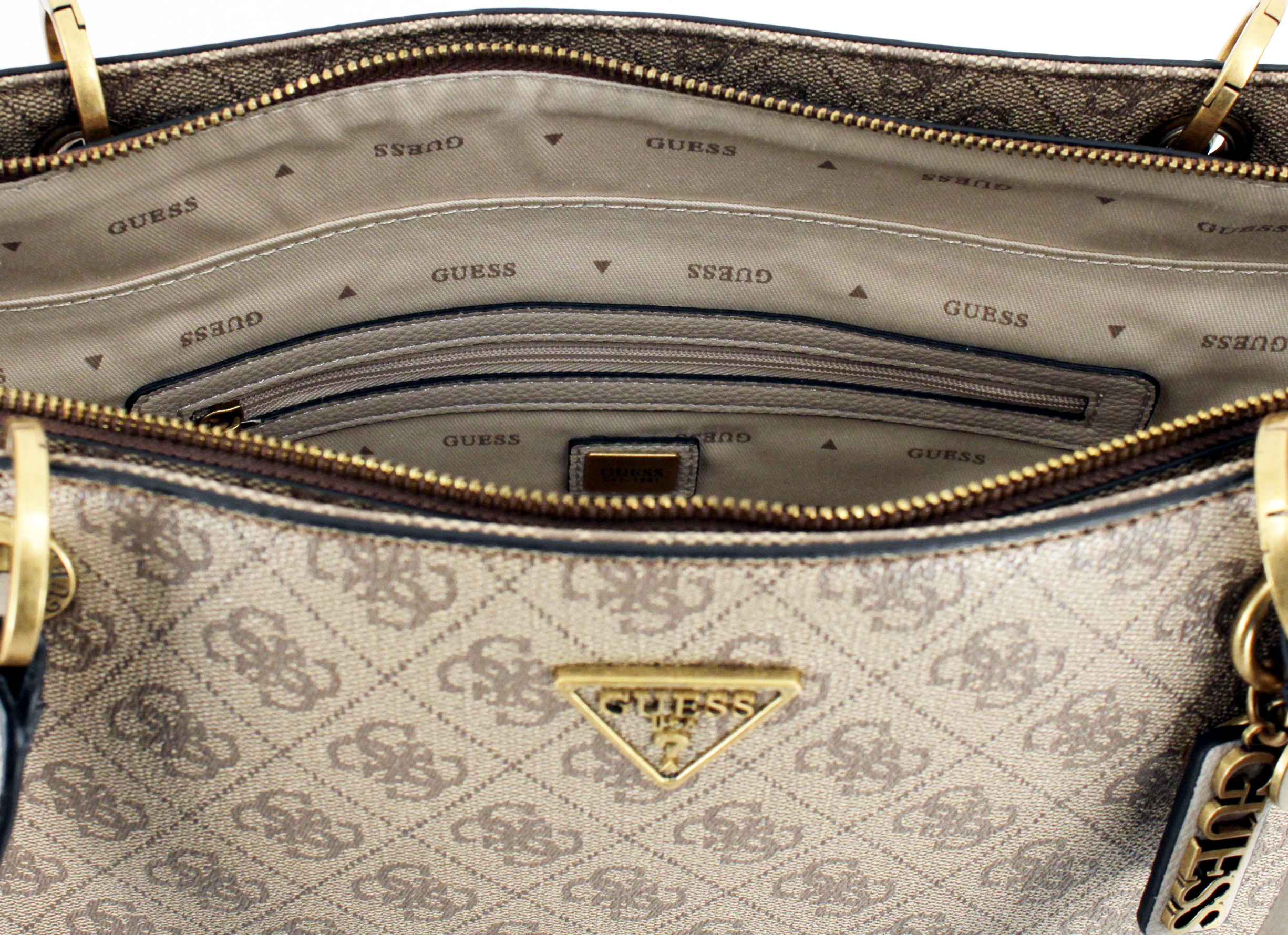 Stylische Begleitung für deinen Laptop! Diese elegante GUESS Tasche aus Öko-Leder bietet sicheren Transport für Laptops bis 15 Zoll. Mit praktischem Reißverschluss-Hauptfach, mehreren Innentaschen und charakteristischem Dreieck-Logo. Maße: 42,5x27,5x4 cm. Verstellbarer Schultergurt für optimalen Tragekomfort und Koffergurt-Befestigung für Reisen. Vorne und hinten zusätzliche Taschen mit Druckknopf-Verschluss. Hochwertige Verarbeitung und zeitloses Design - perfekt für Business, Uni oder Alltag!