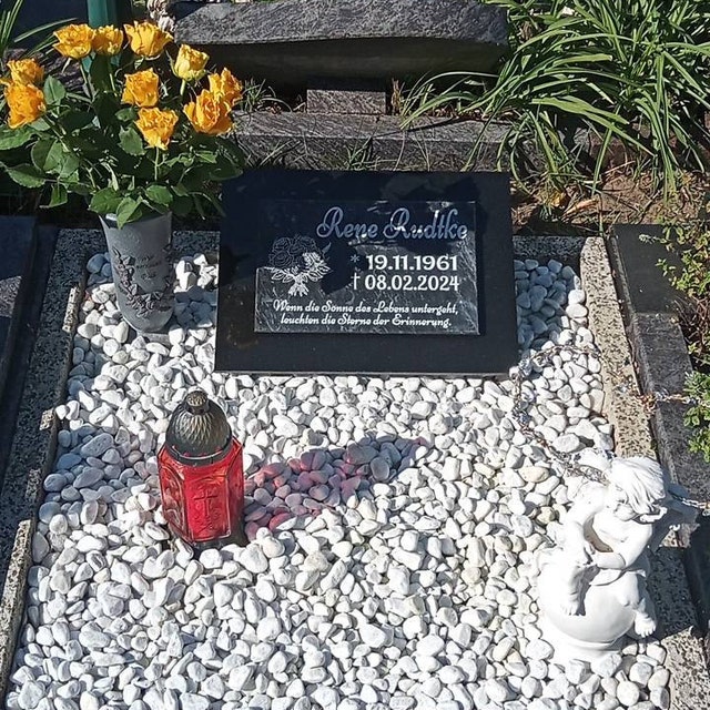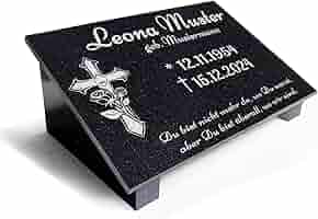 Mit diesem personalisierbaren Grabstein aus hochwertigem Granit schaffst du eine würdige Erinnerung für deine Liebsten. Erhältlich in 30x20 cm, 40x30 cm oder 60x30 cm - optional mit Granit-Stützen zum Aufstellen. Du bestimmst alles: Motiv (wie die schöne Rose), Name, Daten, Schriftart und sogar einen Trauerspruch. Bevor es in Produktion geht, bekommst du einen Entwurf zur Freigabe. Die polierte Oberfläche und die gefasten Kanten verleihen dem Stein eine edle Optik. Die Gravur ist UV- und wasserbeständig - für dauerhafte Lesbarkeit. Granit ist witterungsbeständig und pflegeleicht. Ein tröstliches Andenken, das genau deinen Vorstellungen entspricht. Lieferung inkl. Montagekleber und Anleitung (bei Stützen).