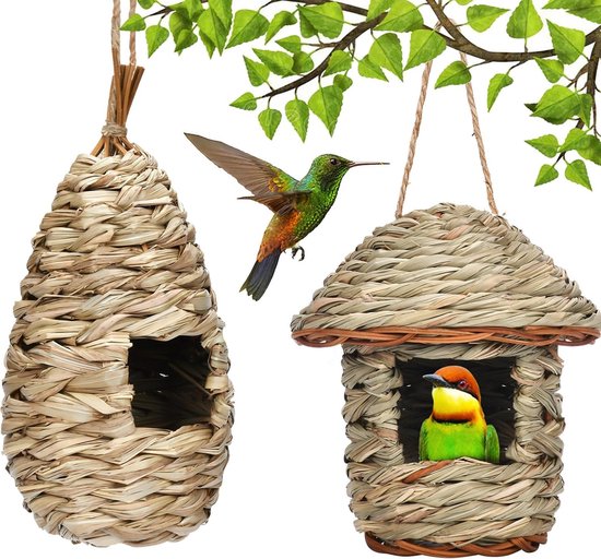 Wie süß sind denn diese Vogennester von LZYKJGS! Du bekommst 2 Stück - perfekt für deinen Garten oder Balkon. Hergestellt aus natürlichem Heu, handgewebt und super robust. Mit 11,5x11,5x22cm Größe und einem Eingang von 3,5x4,5cm bieten sie genug Platz für kleine Vögel wie Wellensittiche, Meisen, Kanarienvögel oder Amseln. Das tolle: Sie sind schimmelresistent, luftdurchlässig und trocken - also perfekt für den Außenbereich. Mit den beiliegenden Seilen kannst du sie einfach an Zweigen, Zäunen oder deinem Balkon aufhängen. Die Vögel haben so einen geschützten Platz vor Kälte, Regen und Raubtieren. Das raue Design gibt den Vogelfüßen besseren Halt. Einfach aufhängen und den Vögeln in deinem Garten ein gemütliches Zuhause bieten! Super für Tierliebhaber und alle, die ihren Garten lebendiger gestalten wollen.