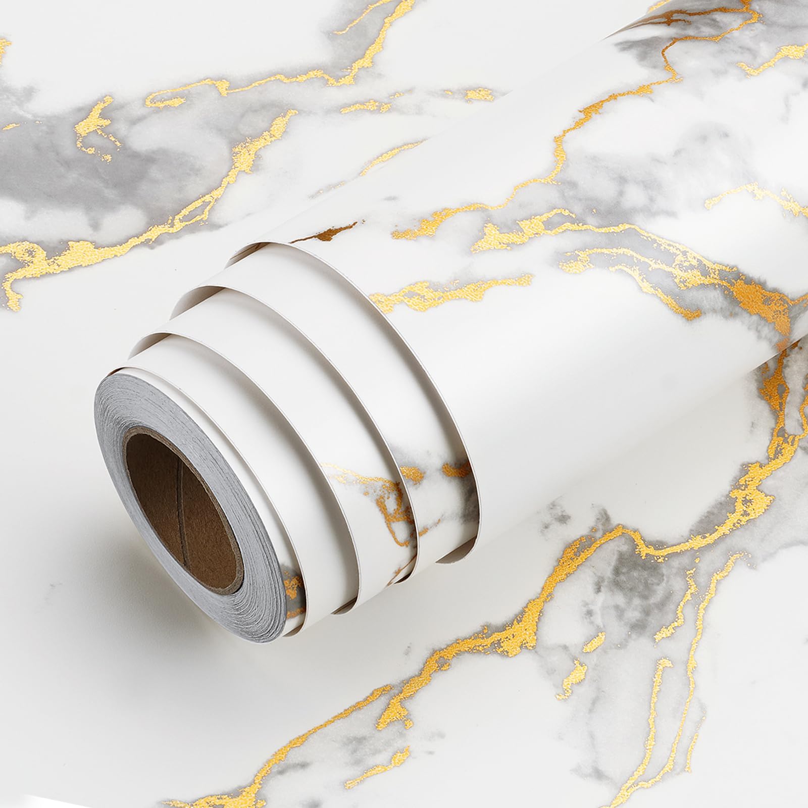 Verwandle deine Möbel im Handumdrehen! Diese selbstklebende Folie in edlem Marmor-Design (Grau mit Gold-Akzenten) gibt alten Möbeln neuen Glanz. Mit 60 cm Breite und 400 cm Länge hast du genug Material für Schränke, Tische oder Arbeitsplatten. Die Hochglanz-Oberfläche ist wasserfest, kratzfest und super leicht zu reinigen. Einfach zu verarbeiten: Oberfläche säubern, zuschneiden, abziehen und aufkleben! Die praktischen Schneidehilfen auf der Rückseite machen das Zuschneiden zum Kinderspiel. Ohne Kleberückstände entfernbar - perfekt für Mieter! Ob Küche, Bad, Schlafzimmer oder Büro - diese Folie bringt frischen Wind in deine vier Wände. Einfach, günstig und wirkungsvoll - so geht Möbel-Upcycling!